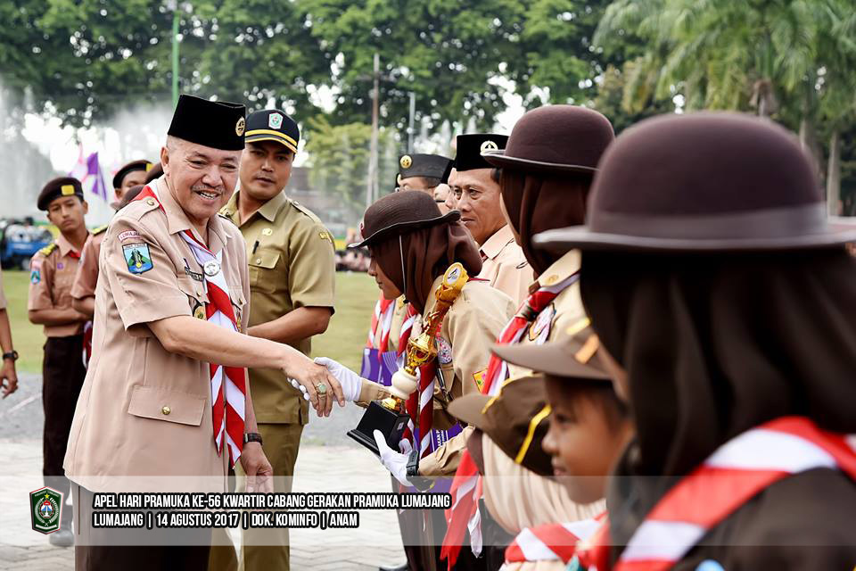 Kegiatan Apel Hari Pramuka Ke-56th, Kwartir Cabang Gerakan Pramuka Lumajang dengan tema "Bekerja Untuk Kaum Muda Mewariskan Yang Terbaik Bagi Bangsa". Bupati As'at mengatakan Pramuka merupakan implementasi langsung dari pendidikan karakter.