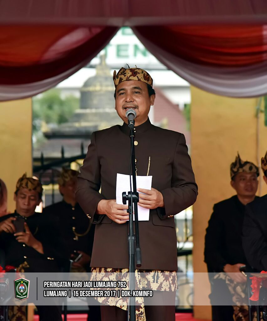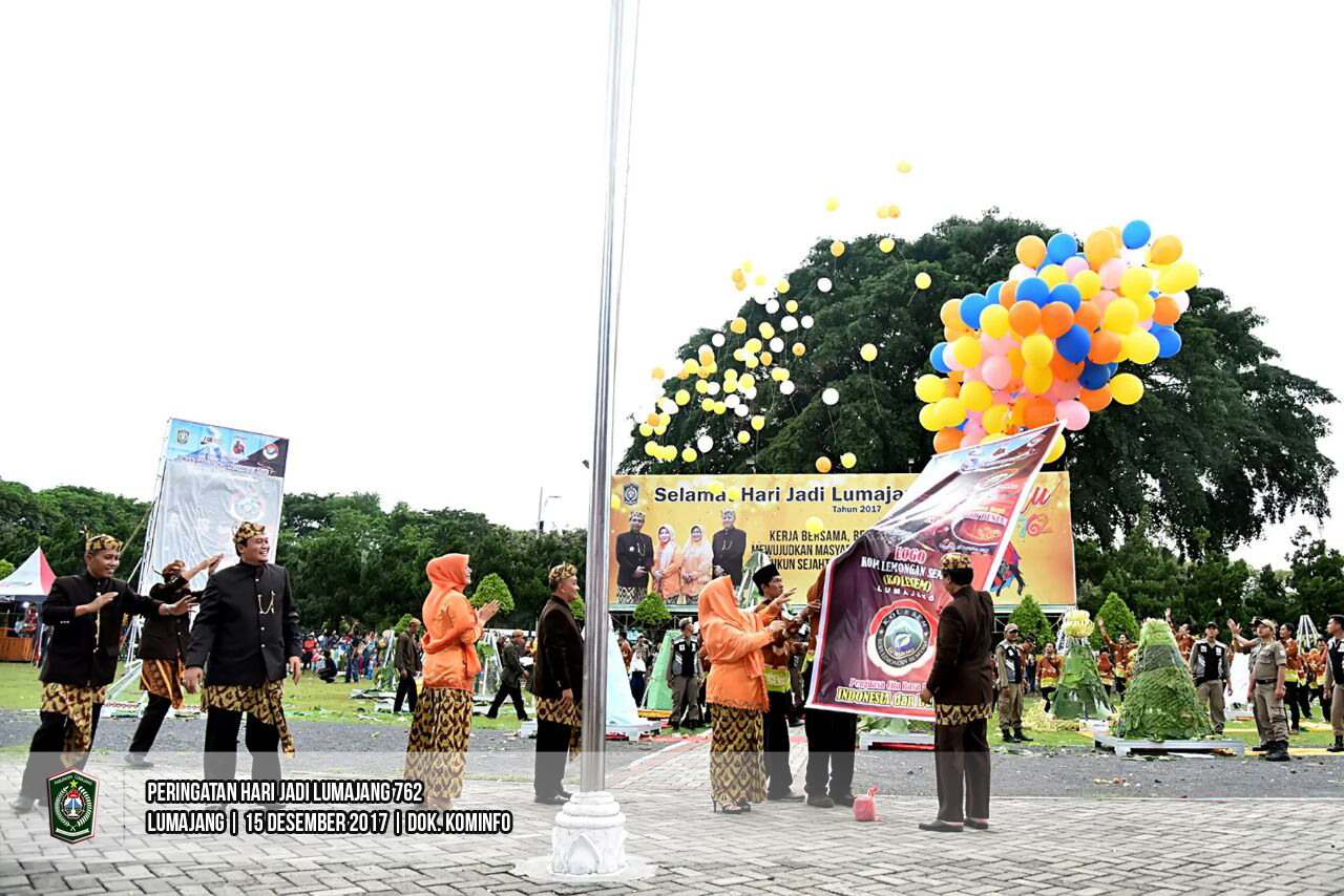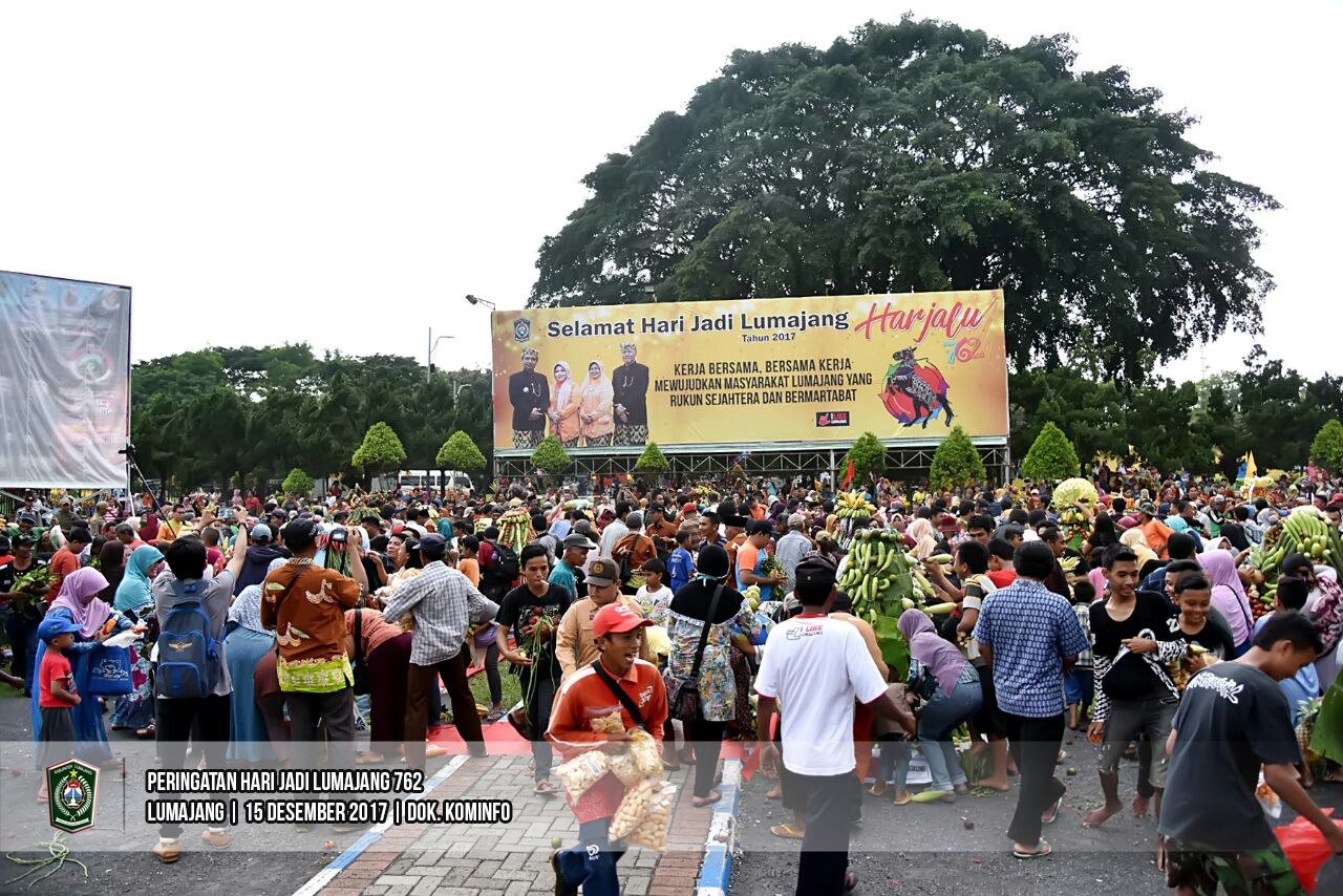 Hari Jadi Kabupaten Lumajang ke 762 ditandai dengan prosesi budaya yang digelar di Alun-alun Lumajang, Jum'at Wage (15/12). Prosesi budaya yang ditandai dengan dikirabnya 21 Gunungan Hasil Bumi Lumajang dan diakhiri dengan Pemotongan Tumpeng oleh Bupati, Forkompinda, Jajaran OPD, Camat dan Kepala Desa seluruh Lumajang.