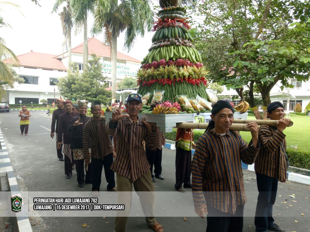 Hari Jadi Kabupaten Lumajang ke 762 ditandai dengan prosesi budaya yang digelar di Alun-alun Lumajang, Jum'at Wage (15/12). Prosesi budaya yang ditandai dengan dikirabnya 21 Gunungan Hasil Bumi Lumajang dan diakhiri dengan Pemotongan Tumpeng oleh Bupati, Forkompinda, Jajaran OPD, Camat dan Kepala Desa seluruh Lumajang.