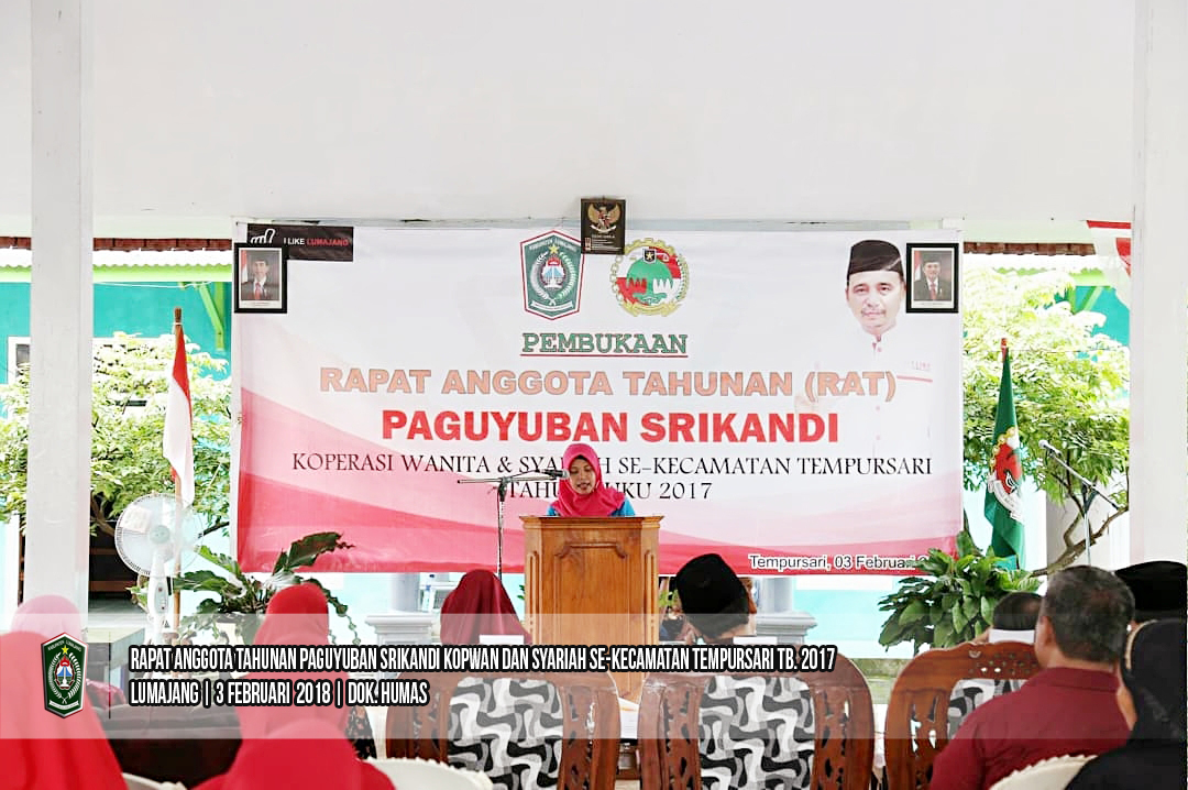 Bupati Lumajang, Drs. H. As'at, M.Ag. membuka Rapat Anggota Tahunan (RAT) Paguyuban Srikandi Kopwan & Syariah se-Kec. Tempursari Tahun Buku 2017, Sabtu (3/2).