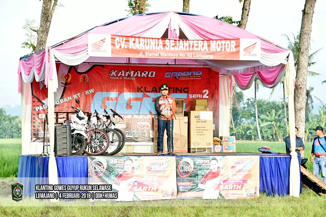 Bupati Lumajang Drs.H.As'at, M. Ag., memberangkatkan 2300 peserta “Klanting GGRS Series 2 2018”. Kegiatan tersebut berlangsung di Lapangan Klanting Kecamatan Sukodono, Minggu (04/02/2018).
