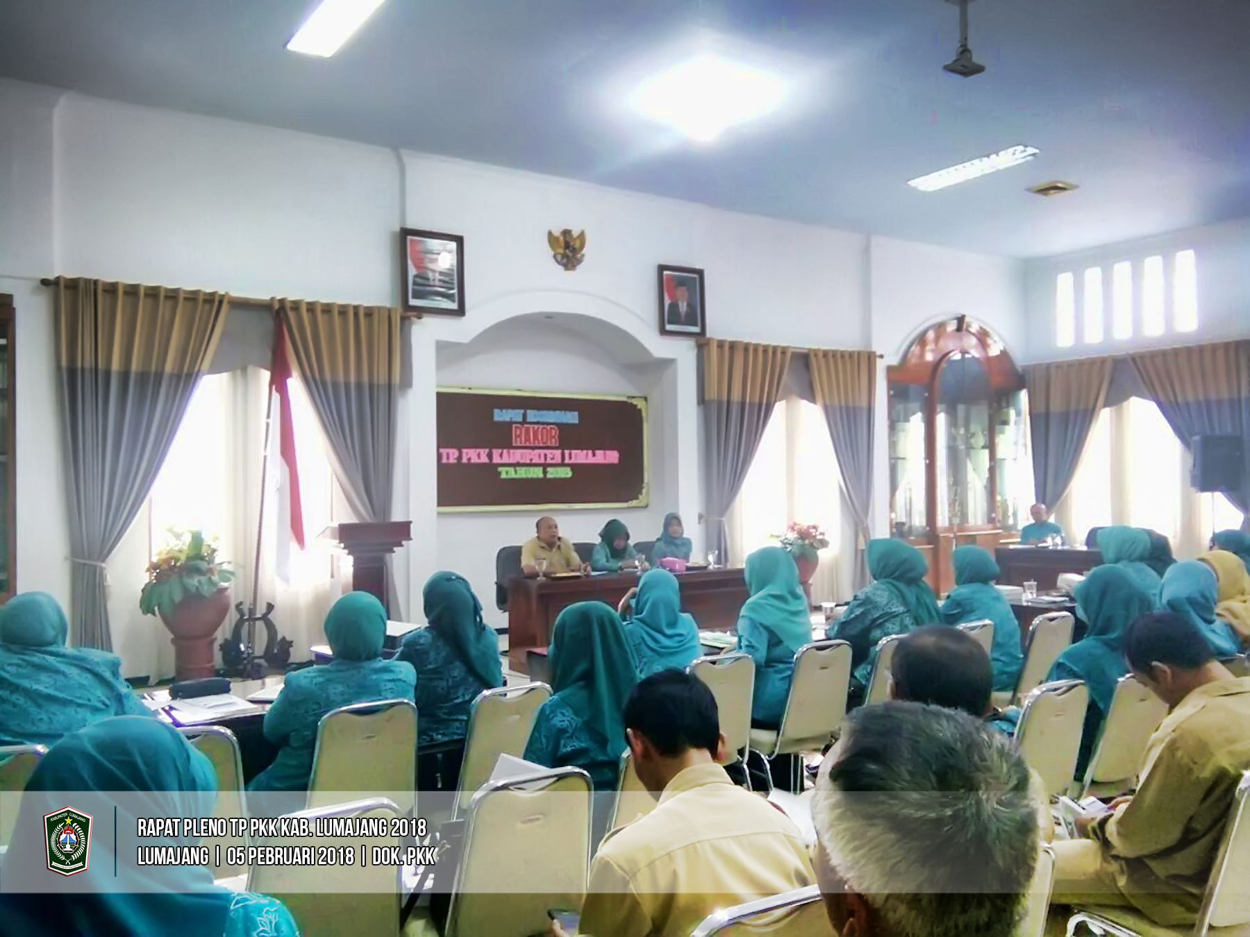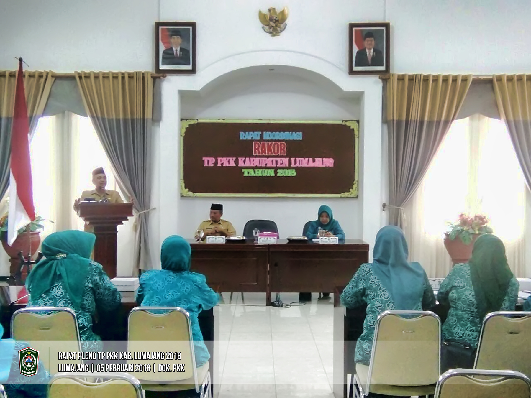 Tim Penggerak PKK Kabupaten Lumajang menggelar Rapat Koordinasi Program Kerja di Panti PKK, Senin (05/02/2018). Rakor Program Kerja TP. PKK 2018 dibuka oleh Bupati Lumajang, Drs. As'at, M.Ag. Turut hadir Sekretaris Daerah, Drs. Gawat Sudarmanto beserta sejumlah pimpinan OPD di Lingkup Pemkab Lumajang, Ketua TP PKK Kabupaten Lumajang, Ny. Hj. Tutuk As’at dan diikuti Pengurus TP PKK Kabupaten Lumajang.(Humas & Protokol-lmj)