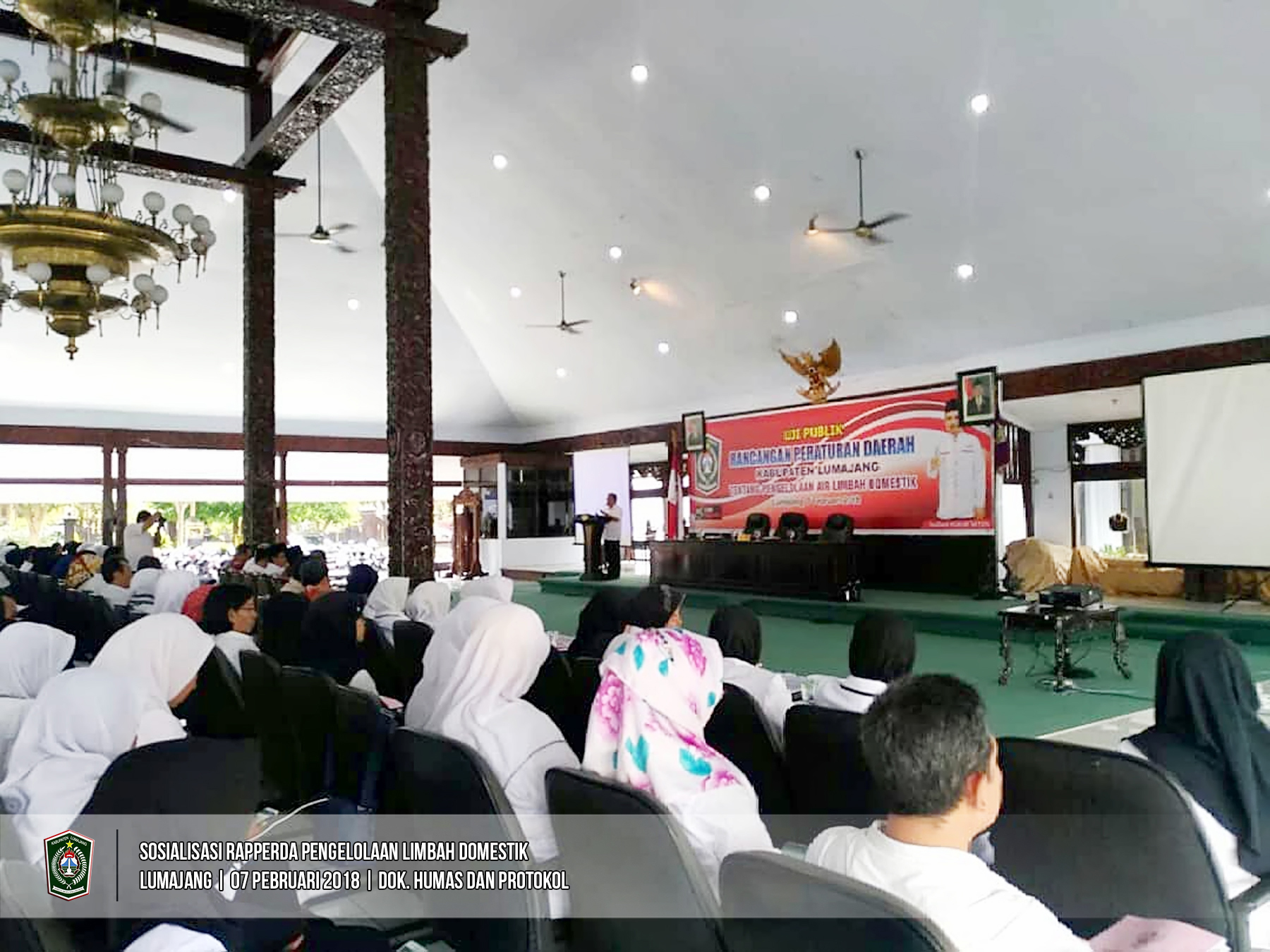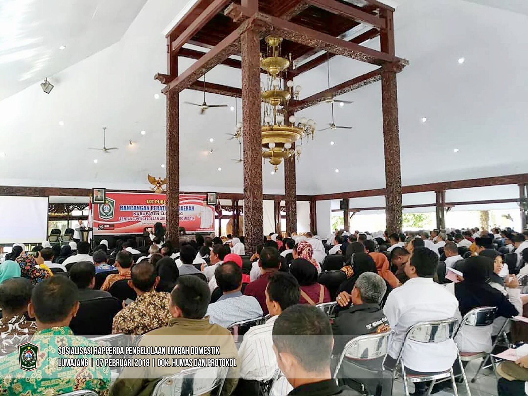 Bupati Lumajang, Drs. As'at M.Ag., membuka kegiatan Uji Publik Rancangan Peraturan Daerah Kabupaten Lumajang tentang Pengelolaan Air Limbah Domestik yang diselenggarakan oleh Bagian Hukum Sekretariat Daerah Lumajang di Pendopo Kabupaten Lumajang, Rabu (7/2/2018). Kegiatan tersebut merupakan kerjasama Pemerintah Kabupaten Lumajang dengan IUWASH Plus (Indonesia Urban Water Sanitation and Hygiene Penyehatan Lingkungan Untuk Semua). (Humas & Protokol-lmj)