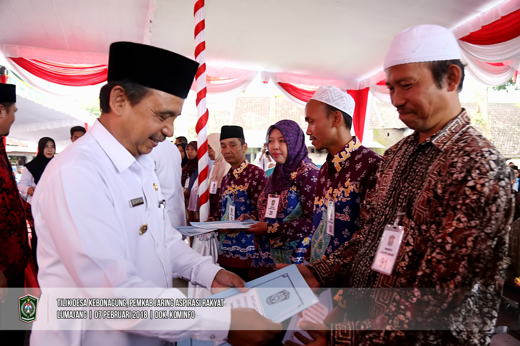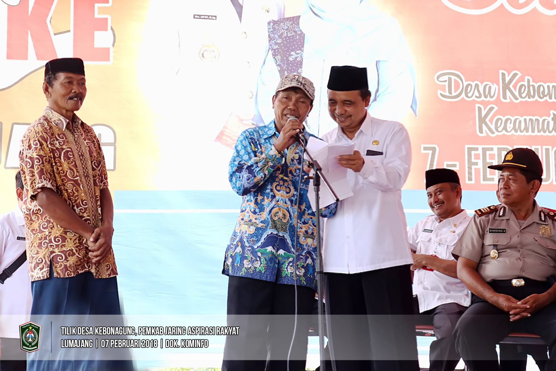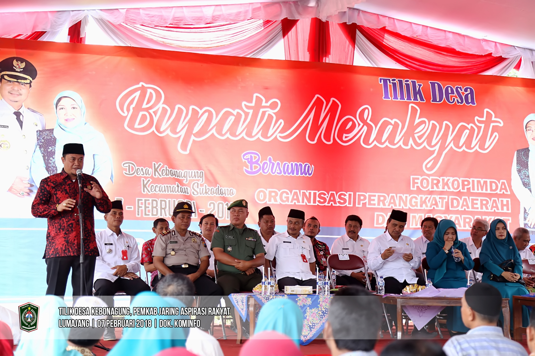 Pemkab Lumajang bersama Forkopimda Lumajang didampingi sejumlah OPD menggelar kegiatan Tilik Desa untuk menjaring aspirasi rakyat dan membuka pelayanan jemput bola, bertempat di Desa Kebonagung Kec. Sukodono, Rabu (7/2). (Kominfo-lmj)