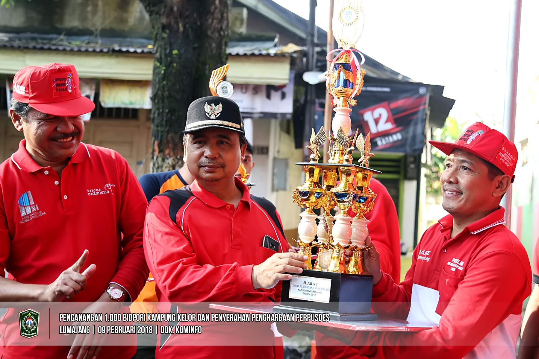 Bupati Lumajang As'at menghadiri acara penyerahan hadiah/ penghargaan lomba perpustakaan dan kearsipan Desa/ Kelurahan se-Kab.Lumajang, yang juga dilanjutkan dengan kegiatan Pencanangan Gerakan 1.000 Biopori Kelurahan Citrodiwangsan Tahap II Tahun 2018, bertempat di Jl. Kyai Ilyas RW 6 Kelurahan Citrodiwangsan Kec. Lumajang, Jum'at (9/2). (Kominfo-lmj)