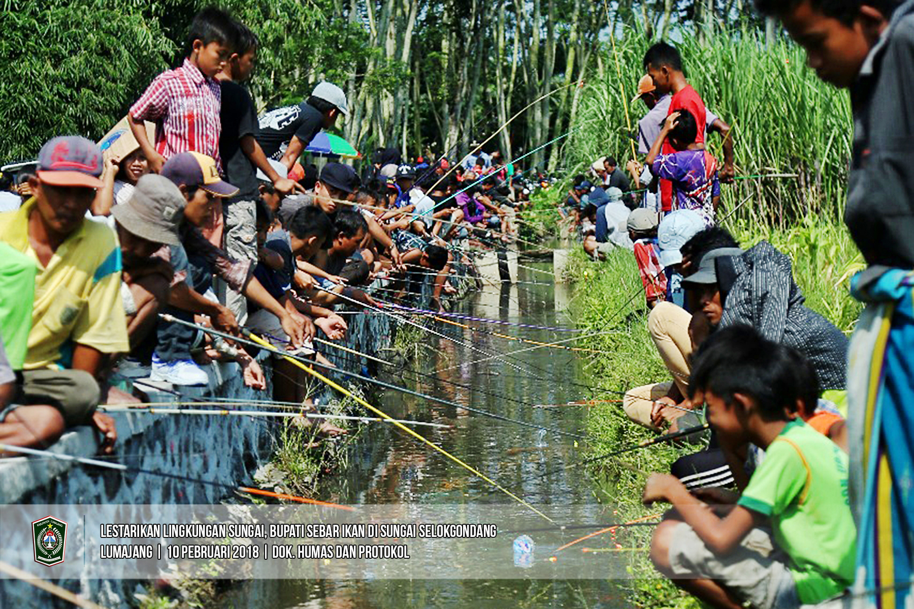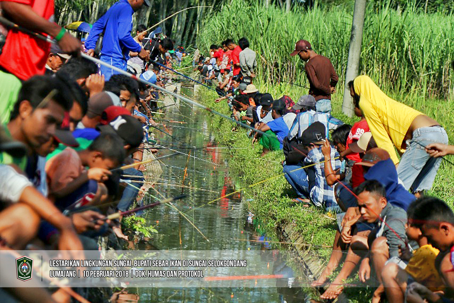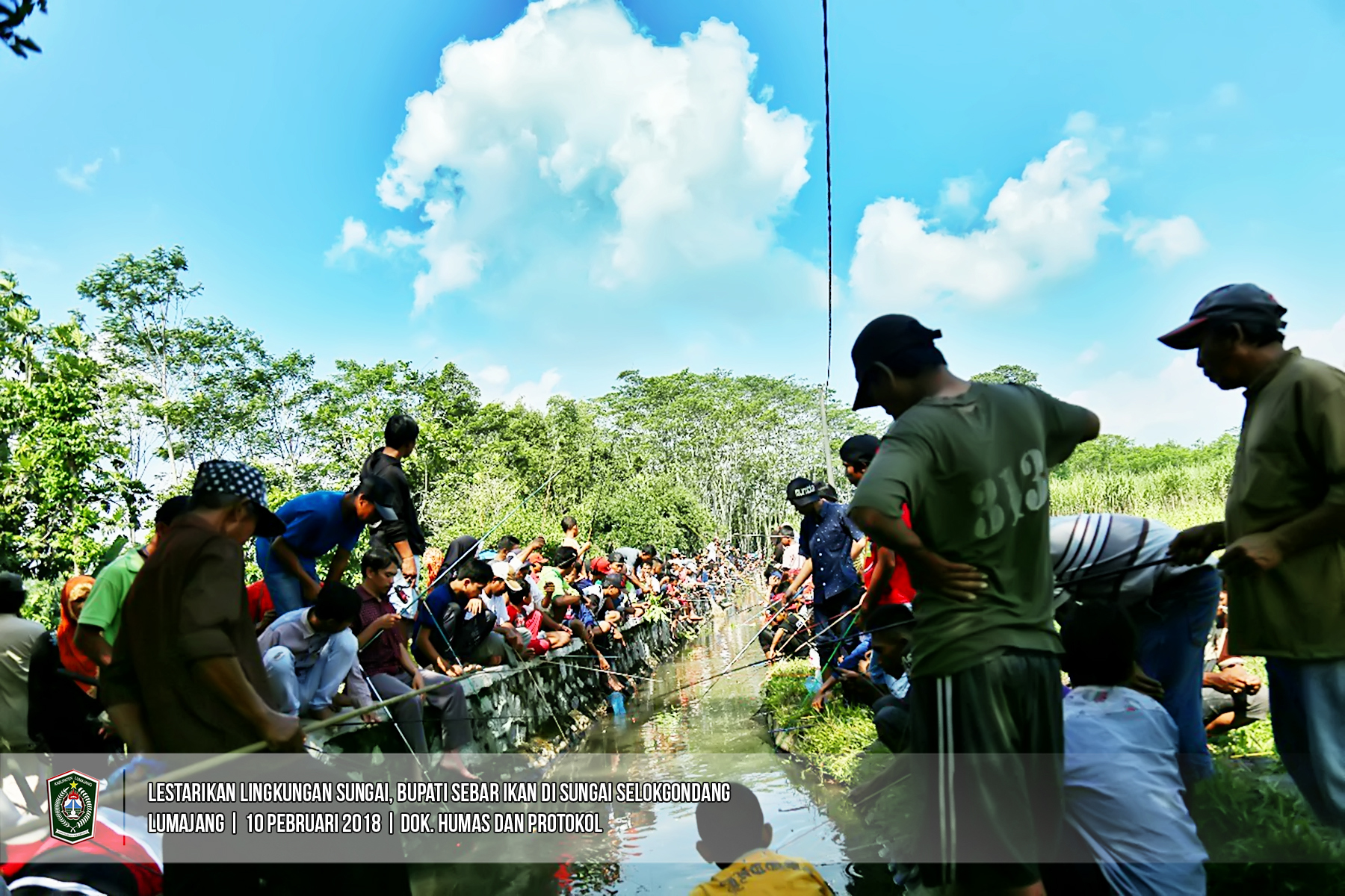 Bupati Lumajang, Drs. As’at, M. Ag menyebar ikan lagi. Kali ini penyebaran ikan dilakukan di sungai Selokgondang, tepatnya masuk Dusun Pohgunung Desa Selokgondang Kecamatan Sukodono, Minggu (11/02/2018). Jenis ikan yang disebar Bupati As'at adalah Lele dan Patin sebanyak 1,5 Kuintal. (Bag. Humas & Protokol-lmj)