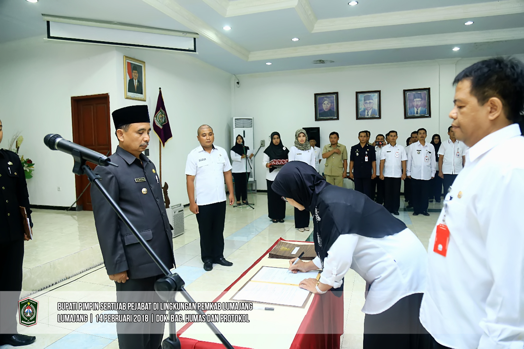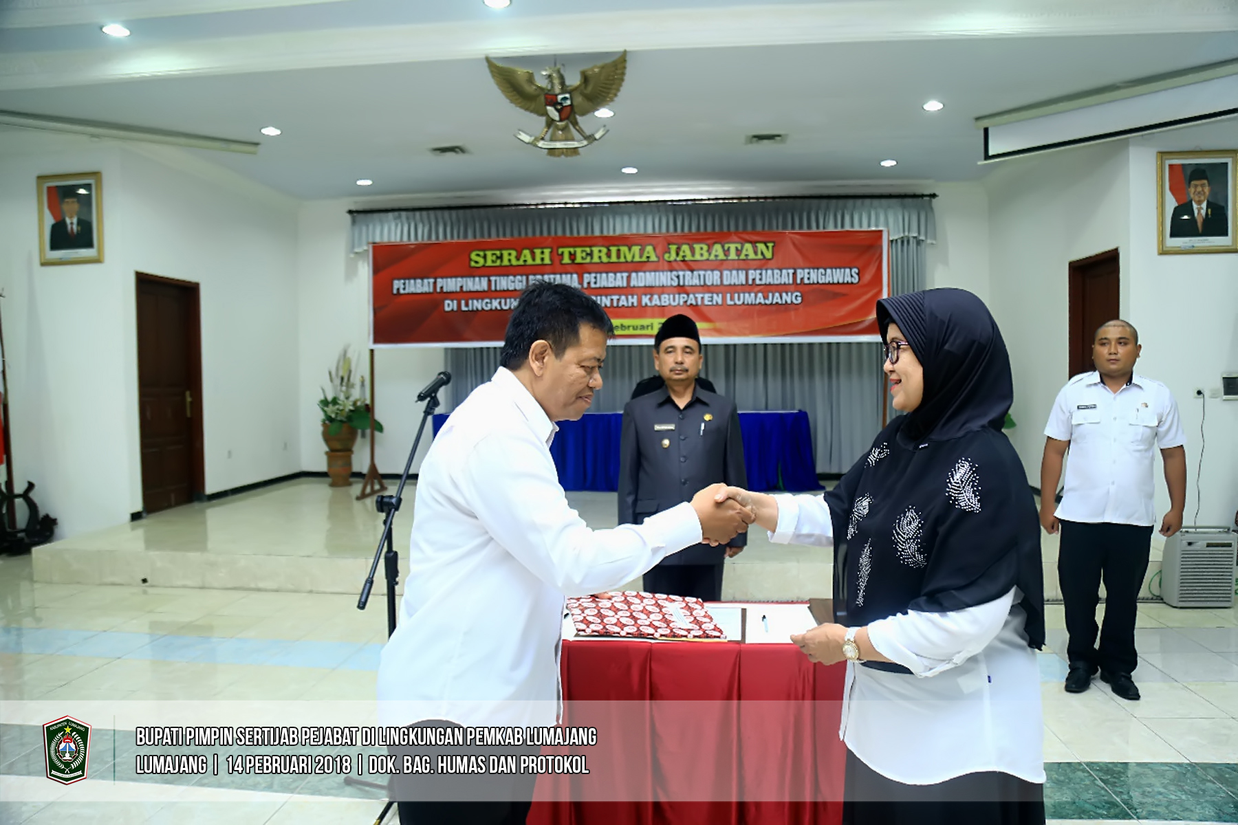 Menindaklanjuti acara Pelantikan Pejabat yang sudah dilakukan pada Jum’at (9/2/2018), Pemerintah Kabupaten Lumajang melakukan Serah Terima Jabatan Pejabat Pimpinan Tinggi Pratama, Pejabat Administrator dan Pejabat Pengawas di Lingkungan Pemerintah Kabupaten Lumajang, di Ruang Narariya Kirana, Lt. 3 Kantor Bupati Lumajang, Rabu (14/2/2018). Dalam acara tersebut juga dilakukan penyerahan buku memori oleh pejabat lama kepada pejabat baru. (Bag. Humas & Protokol-lmj)