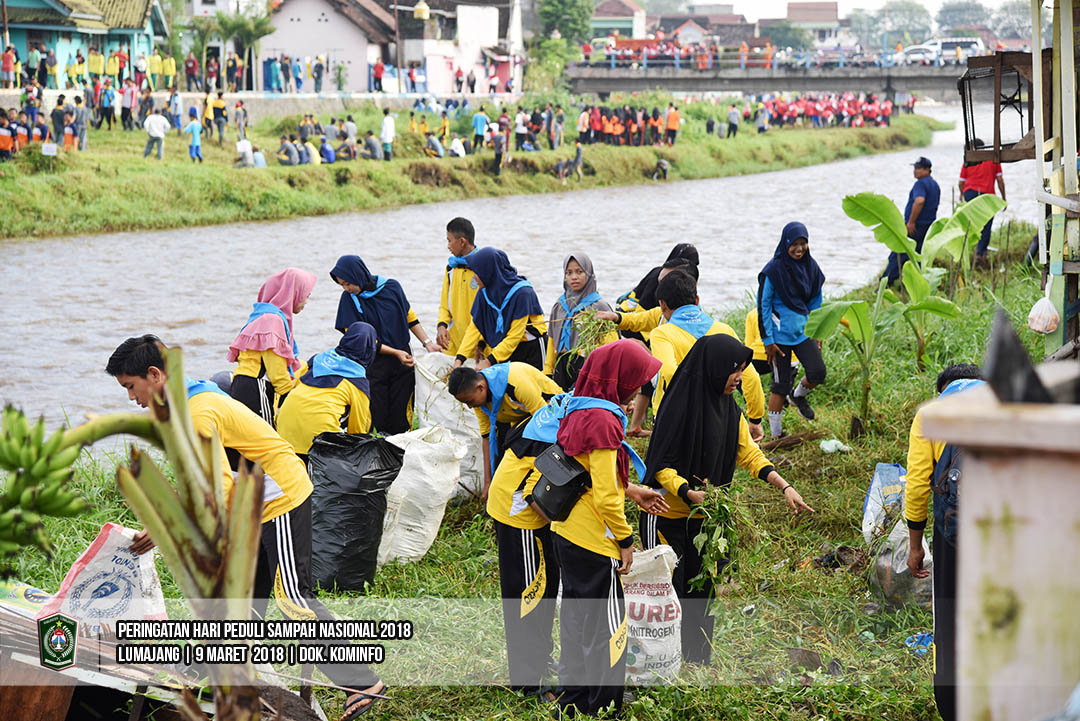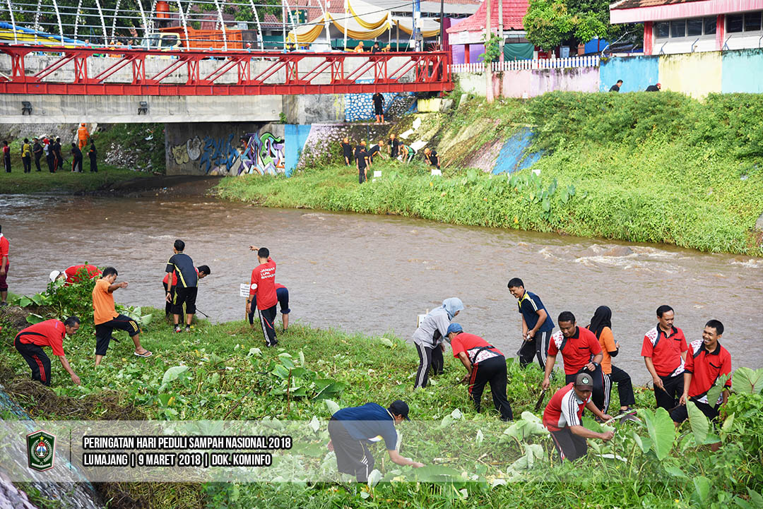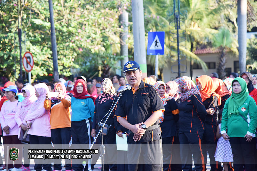 Asisten Pemerintahan Setda Kabupaten Lumajang, Susiyanto, S.H., memimpin aksi pungut sampah dalam rangka Hari Peduli Sampah Nasional (HPSN) 2018, di Alun-alun Lumajang, Minggu (11/3/2018). Kegiatan tersebut diikuti oleh OPD di Lingkup. Pemkab Lumajang dan para aktivis lingkungan.