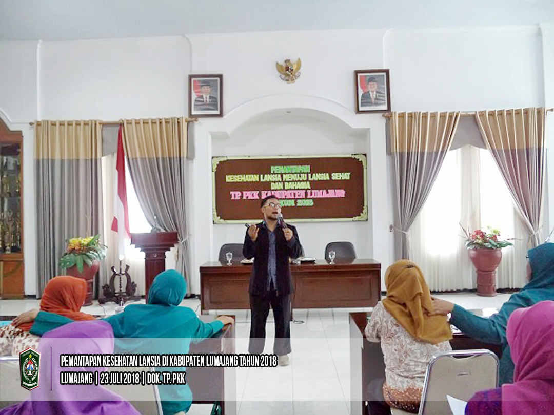 Dalam rangka pelaksanana Perencanaan Sehat Pokja IV, TP PKK Kabupaten Lumajang menyelenggarakan kegiatan Pemantapan Kesehatan Lansia di Kabupaten Lumajang Tahun 2018, pada hari Senin tanggal 23 Juli 2018 bertempat di Geudung PKK Kabupaten Lumajang. Acara ini dihadiri dan dibuka langusng oleh Wakil Ketua III TP PKK Kabupaten Lumajang Ibu Gawat S. kegiatan ini di selenggarakan dengan tujuan meningkatkan kualitas hidup sehat agar menjadi Lansia yang Sehat, Aktif dan Produktif.