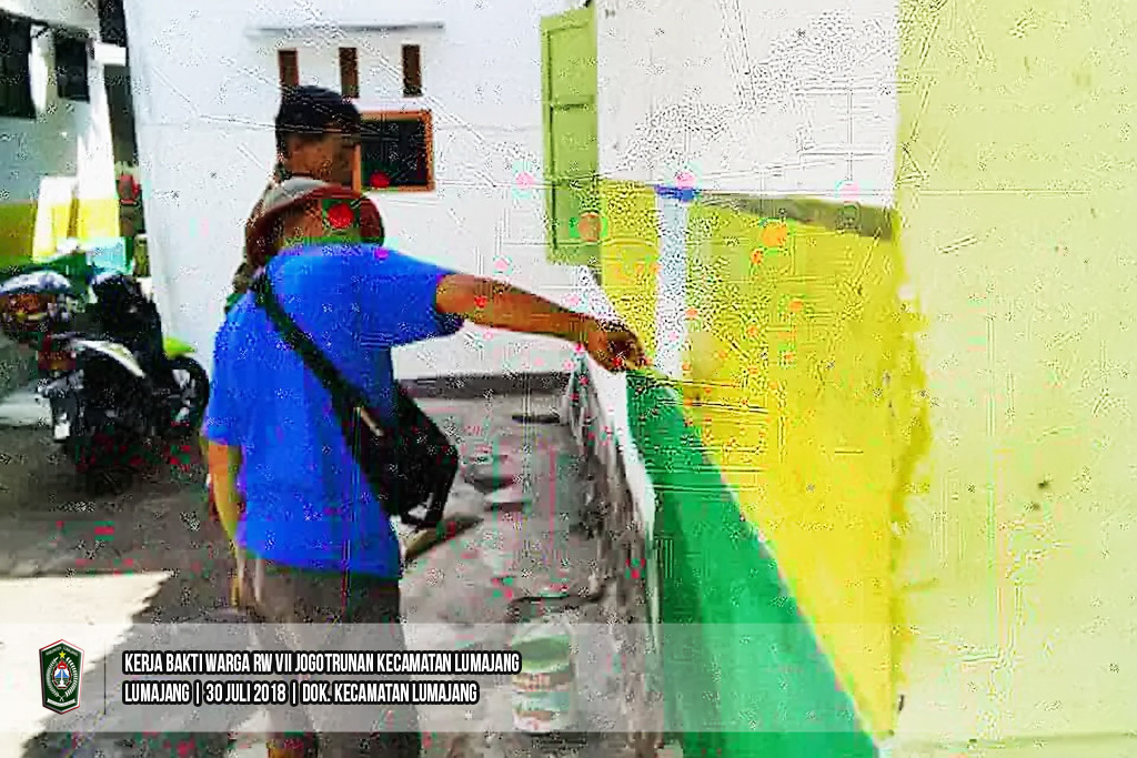 (Lumajang-29/07/2018) Dalam Bulan Juli 2018, sudah 4 kali warga RW VII Kelurahan Jogotrunan melaksanakan kerja bakti menata lingkungan berupa "rempesan" penaung jalan, pengecatan, serta menghias gang. Hari ini kerja bakti kembali dilaksanakan yang diikuti kurang lebih 30 warga dan hasilny nampak, gang-gang di lingkungan RW VII Kelurahan Jogotrunan makin menarik berwarna warni.
