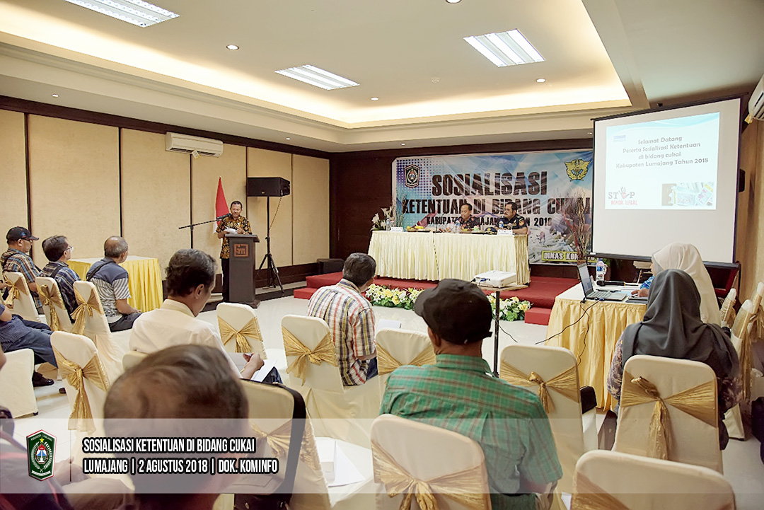 Pemerintah Kabupaten Lumajang melalui Dinas Komunikasi dan Informatika (Kominfo) kembali mengadakan Sosialisai Ketentuan di Bidang Cukai, bertempat di Hall Arjuna Hotel Graha Mulia Lumajang Kamis, (2/8/2018). Peserta kegiatan kali ini, berasal dari pedagang rokok dan Ketua RT/RW dalam wilayah Kelurahan Jogotrunan Lumajang.