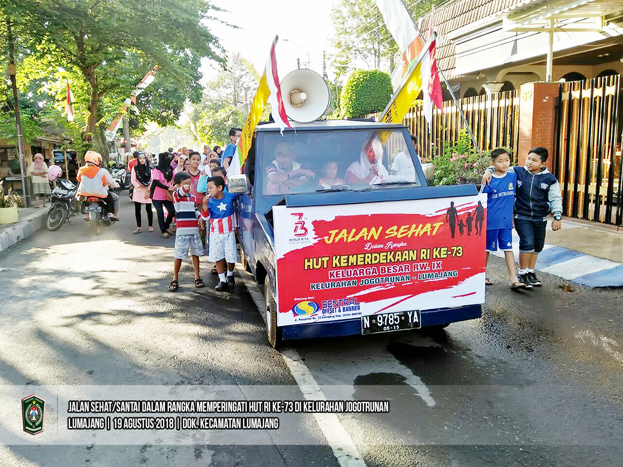 Jalan Sehat RW XII Kelurahan Jogotrunan, diikuti sekitar 250 peserta, start dan finish di Jl. Asahan. Dimeriahkan juga dengan musik patrol yg mengiringi sepanjang rute.