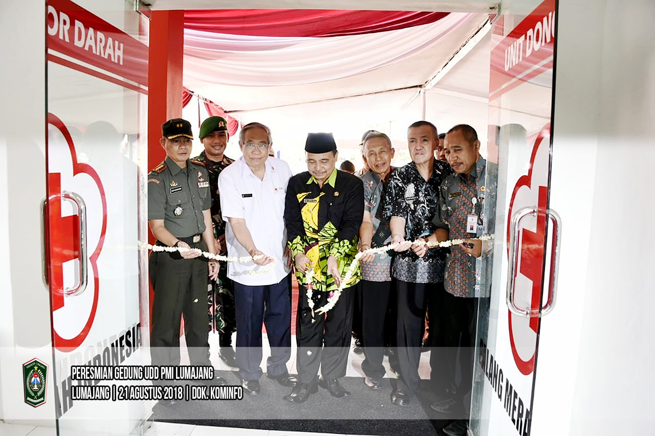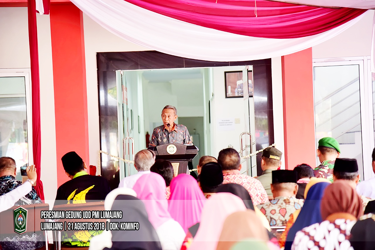 Keberadaan UDD PMI Lumajang mempunyai peran dan tanggung jawab besar dalam menjamin kebutuhan darah di Lumajang. Hal itu disampaikan Bupati Lumajang, Drs. As'at, M.Ag., saat meresmikan Gedung Unit Donor Darah Palang Merah Indonesia (UDD PMI) Lumajang yang terletak di Jln. Imam Sudja’i No. 3 Lumajang, Selasa (21/8/2018). Peresmian ditandai dengan penandatanganan prasasti dan pemotongan untaian melati oleh Bupati Lumajang.