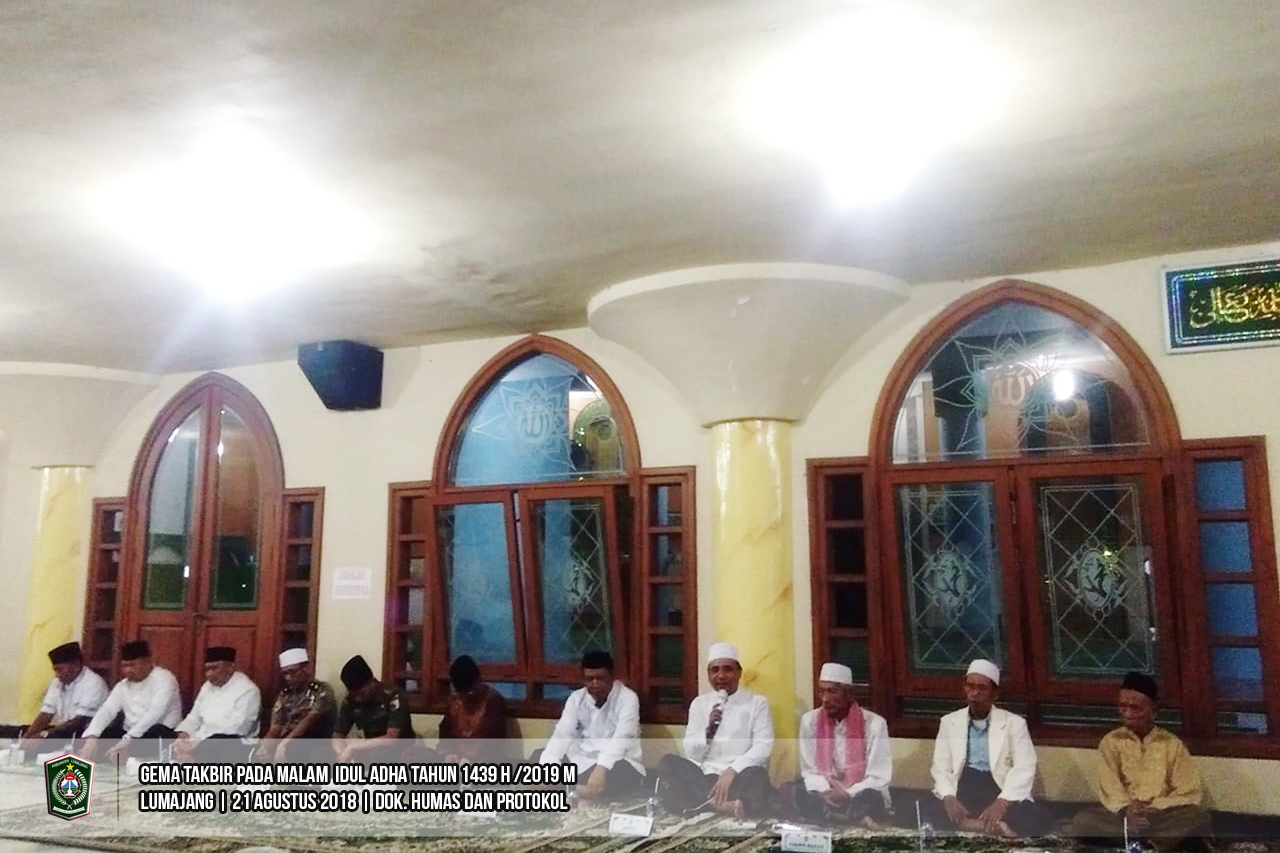 Gema Takbir pada malam Takbiran Idul Adha Pemerintah Kabupaten Lumajang Tahun 1439 H / 2018 M berlangsung dengan khidmat di Masjid Agung KH. Anas Mahfudz Lumajang, Selasa (21/8/2018).