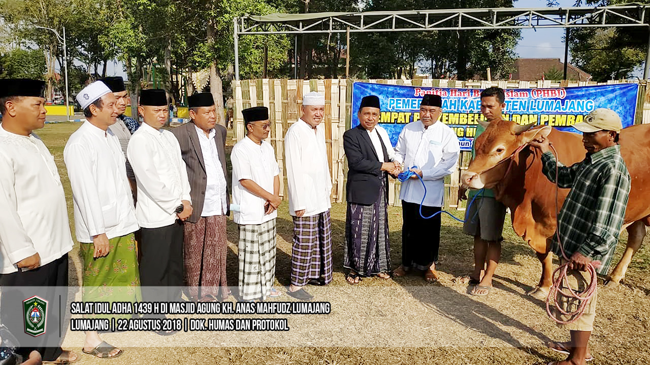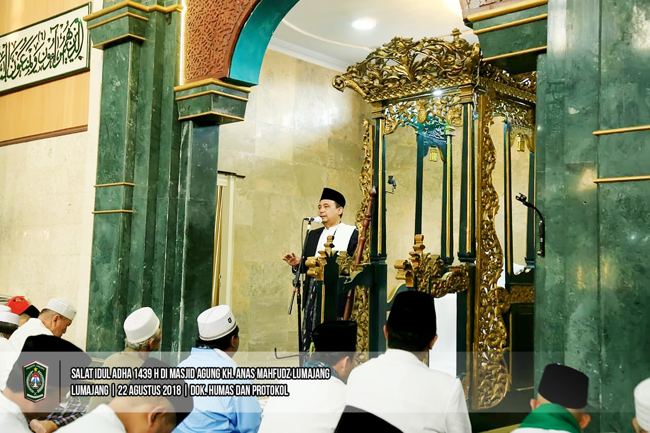 Bupati Lumajang As'at bersama Forum Koordinasi Pimpinan Daerah (Forkopimda) Plus Kabupaten Lumajang didampingi sejumlah Kepala OPD di lingkungan Pemkab Lumajang melaksanakan salat Idul Adha 1439H di Masjid Agung KH. Anas Mahfudz Lumajang, Rabu (22/8/2018).