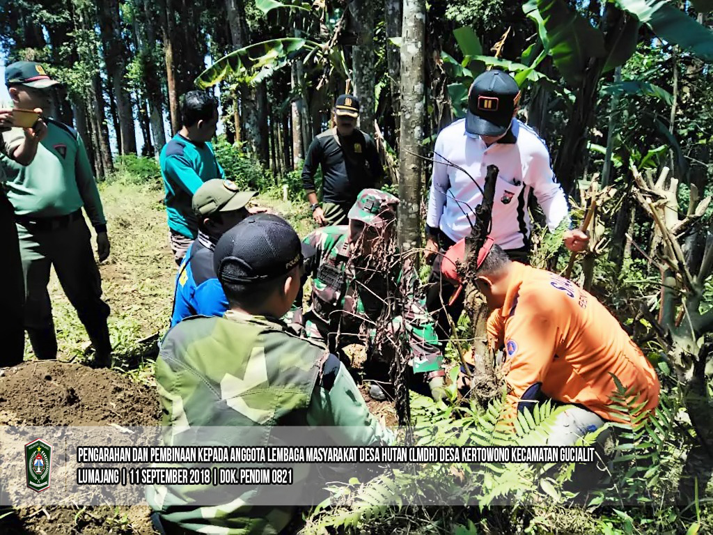 Sebagai upaya mencegah dan membatasi kerusakan hutan, kawasan hutan, dan hasil hutan di Kabupaten Lumajang, Forum Koordinasi Pimpinan Kecamatan (Forkopimcam) Gucialit memberikan arahan dan pembinaan kepada anggota Lembaga Masyarakat Desa Hutan (LMDH) Desa Kertowono, bertempat di Petak 28B Pasang Desa Kertowono Kecamatan Gucialit, Selasa (11/9/2018).