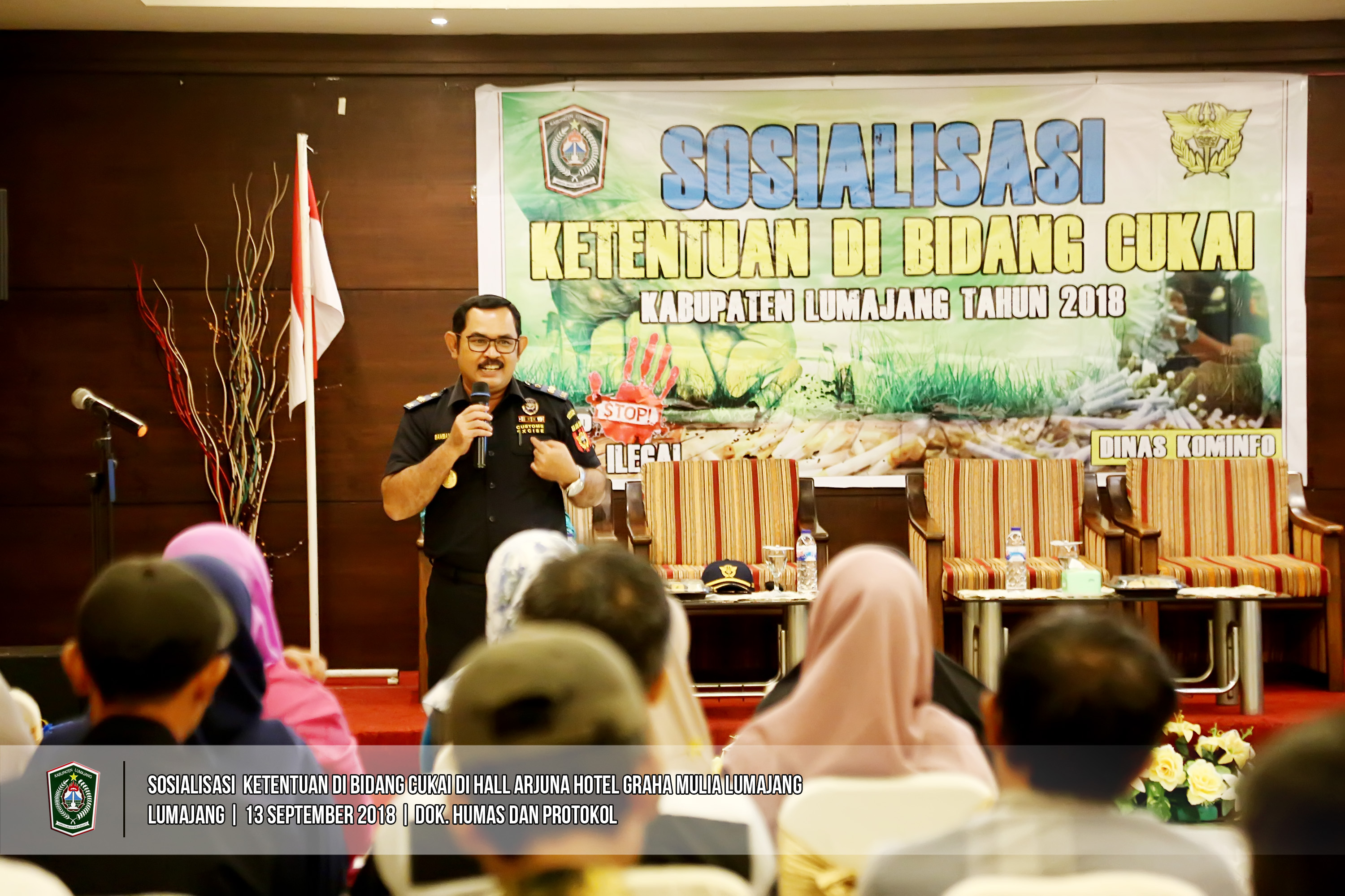 Pemerintah Kabupaten Lumajang melalui Dinas Komunikasi dan Informatika (Kominfo) Lumajang kembali mengadakan Sosialisai Ketentuan di Bidang Cukai yang ke-3 di tahun ini, bertempat di Hall Arjuna Hotel Graha Mulia Lumajang Kamis, (13/09/2018).