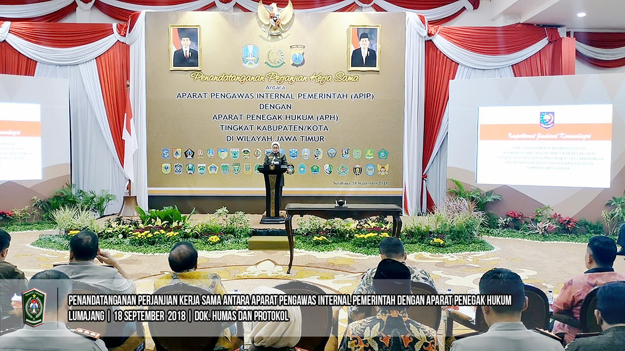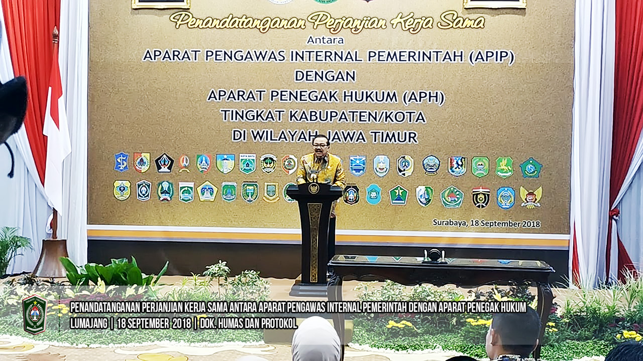 Guna memperkuat koordinasi penegakan hukum penanganan pengaduan masyarakat terkait kasus korupsi yang melibatkan ASN, Kementerian Dalam Negeri melakukan Penandatanganan Perjanjian Kerja Sama antara Aparat Pengawas Internal Pemerintah (APIP) dengan Aparat Penegak Hukum (APH) tingkat Kabupaten/Kota di wilayah Jawa Timur, Selasa (18/9/2018) siang.