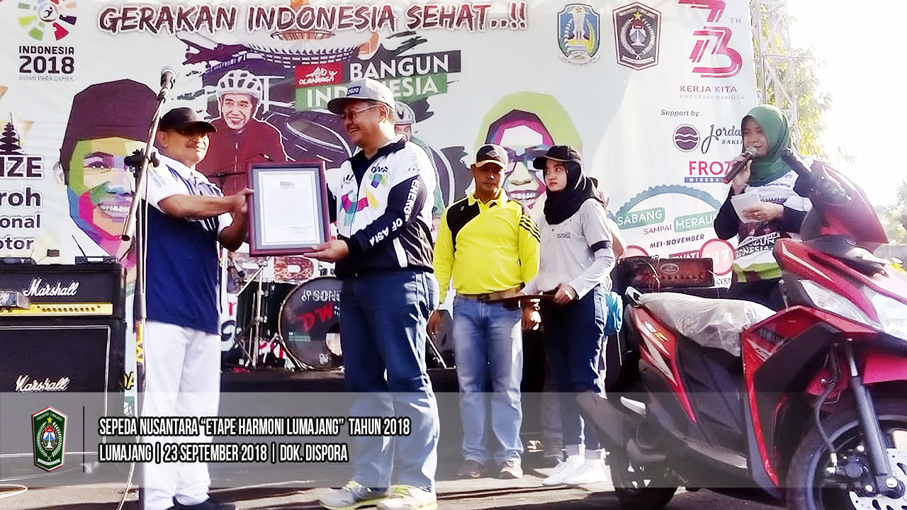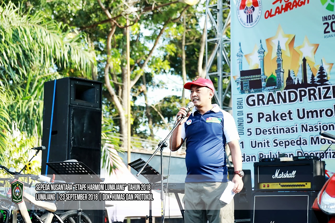 Tercatat sekitar 7.000 lebih orang peserta diberangkatkan oleh Staf Ahli Bidang Ekonomi Kreatif Kemenpora RI untuk menyemarakkan event Sepeda Nusantara yang digelar oleh Dinas Pemuda dan Olahraga (Dispora) Kabupaten Lumajang dan Kementerian Pemuda dan Olahraga RI, bertempat di halaman Stadion Semeru Lumajang, Minggu (23/9/2018).