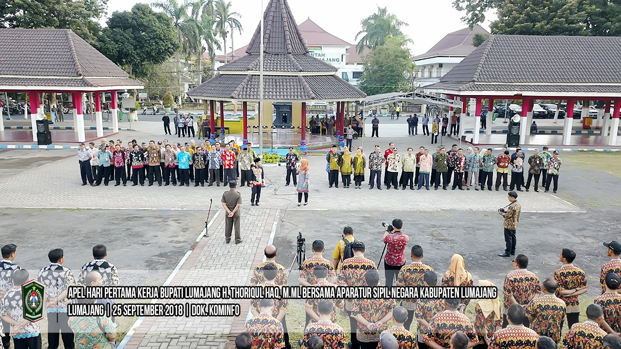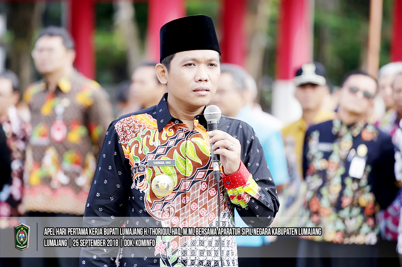 Hari Pertama kerja sebagai Bupati Lumajang, H. Thoriqul Haq, M.ML., menggelar Apel Aparatur Sipil Negara (ASN) Pemerintah Kabupaten Lumajang di Alun-alun Lumajang, Selasa (25/09/2018).