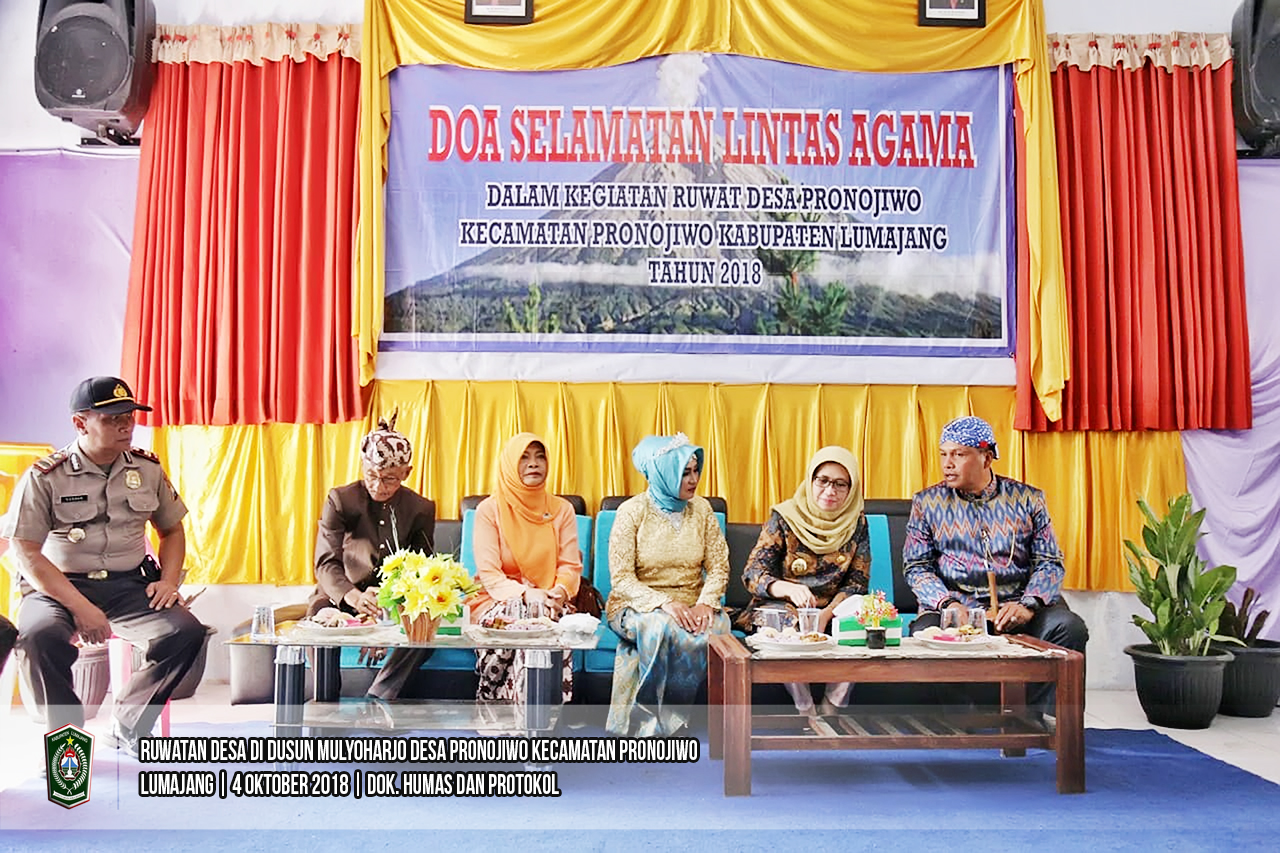 Wakil Bupati Lumajang Indah Amperawati (Bunda Indah) berharap agar masyarakat tetap melestarikan budaya ruwatan desa. Mengingat acara tersebut mengandung unsur kebudayaan yang cukup kuat sebagai budaya lokal di Kabupaten Lumajang. Hal itu disampaikan dalam sambutannya pada prosesi Ruwatan Desa, di Dusun Mulyoharjo Desa Pronojiwo Kecamatan Pronojiwo, Kamis (4/10/2018) pagi.