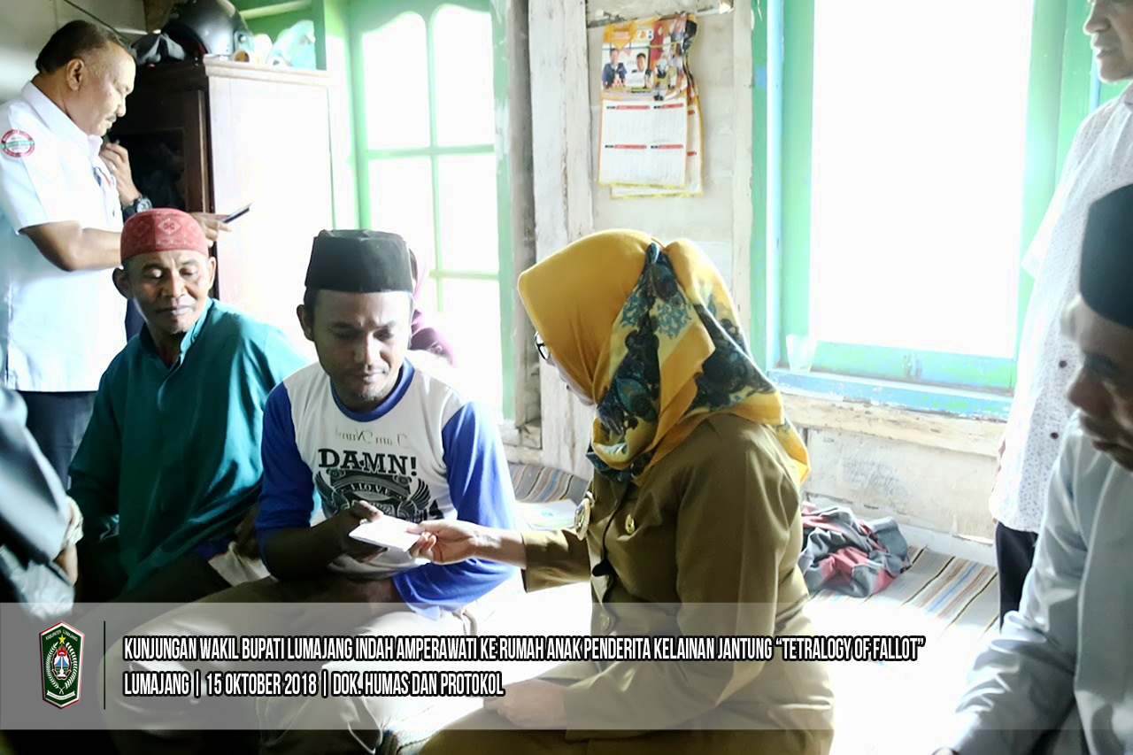 Wakil Bupati Lumajang, Indah Amperawati (Bunda Indah) menjenguk Nabila Eka Anggraini, bocah penderita kelainan jantung yang dalam istilah medis disebut Tetralogy of Fallot (ToF) di Dusun Karanganyar, Desa Burno Kecamatan Senduro, Senin (15/10/2018). Nabila, adalah Putri dari pasangan Rudi dan Seneti yang masih berumur 4 tahun dan menderita kelainan jantung sejak lahir.