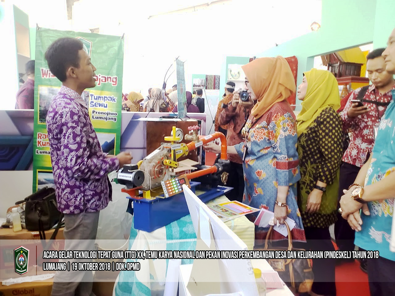 Wakil Bupati Lumajang, Indah Amperawati (Bunda Indah) menghadiri acara pembukaan Gelar Teknologi Tepat Guna (TTG) XX, Temu Karya Nasional, dan Pekan Inovasi Perkembangan Desa dan Kelurahan (PINDesKel) tahun 2018, di Garuda Wisnu Kencana, Bali, Jum'at (19/10/2018). Acara tersebut dibuka langsung oleh Presiden RI, Joko Widodo yang ditandai dengan pemukulan kentongan dan akan berlangsung hingga tanggal 21 Oktober 2018.