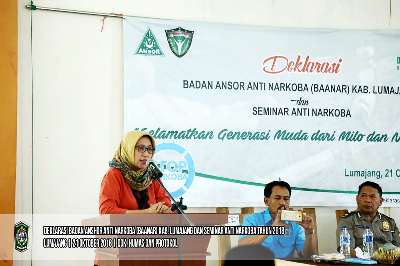 Hal tersebut disampaikan oleh Wakil Bupati Lumajang Indah Amperawati (Bunda Indah) saat menghadiri acara Deklarasi Badan Anshor Anti Narkoba (BAANAR) Kabupaten Lumajang dan Seminar Anti Narkoba Tahun 2018, dengan tema "Selamatkan Generasi Muda Dari Milo (Minuman Lokal Oplosan) dan Narkoba", bertempat di Hall Rumah Makan Dapurku Lumajang, Minggu (21/10/2018).
