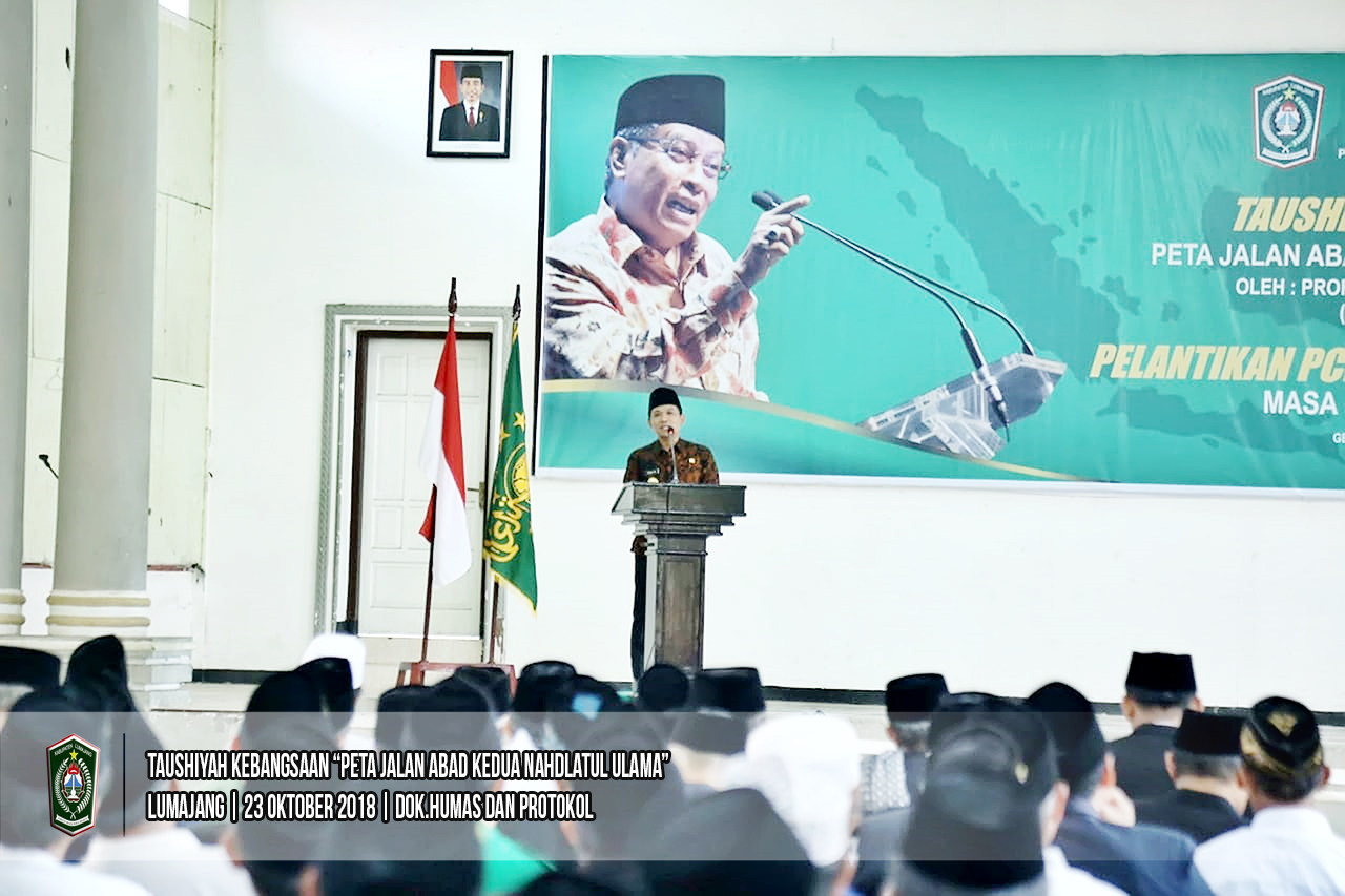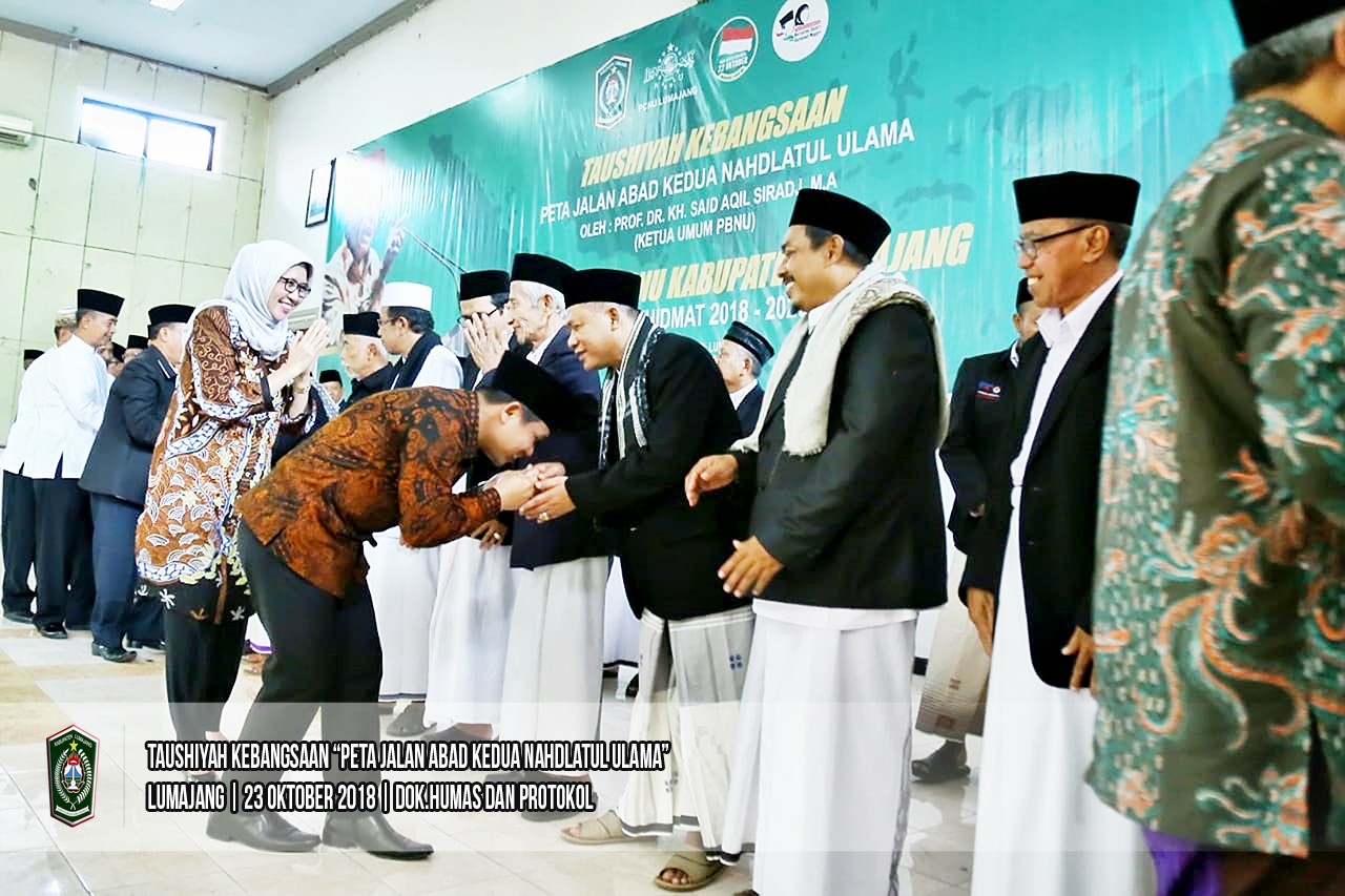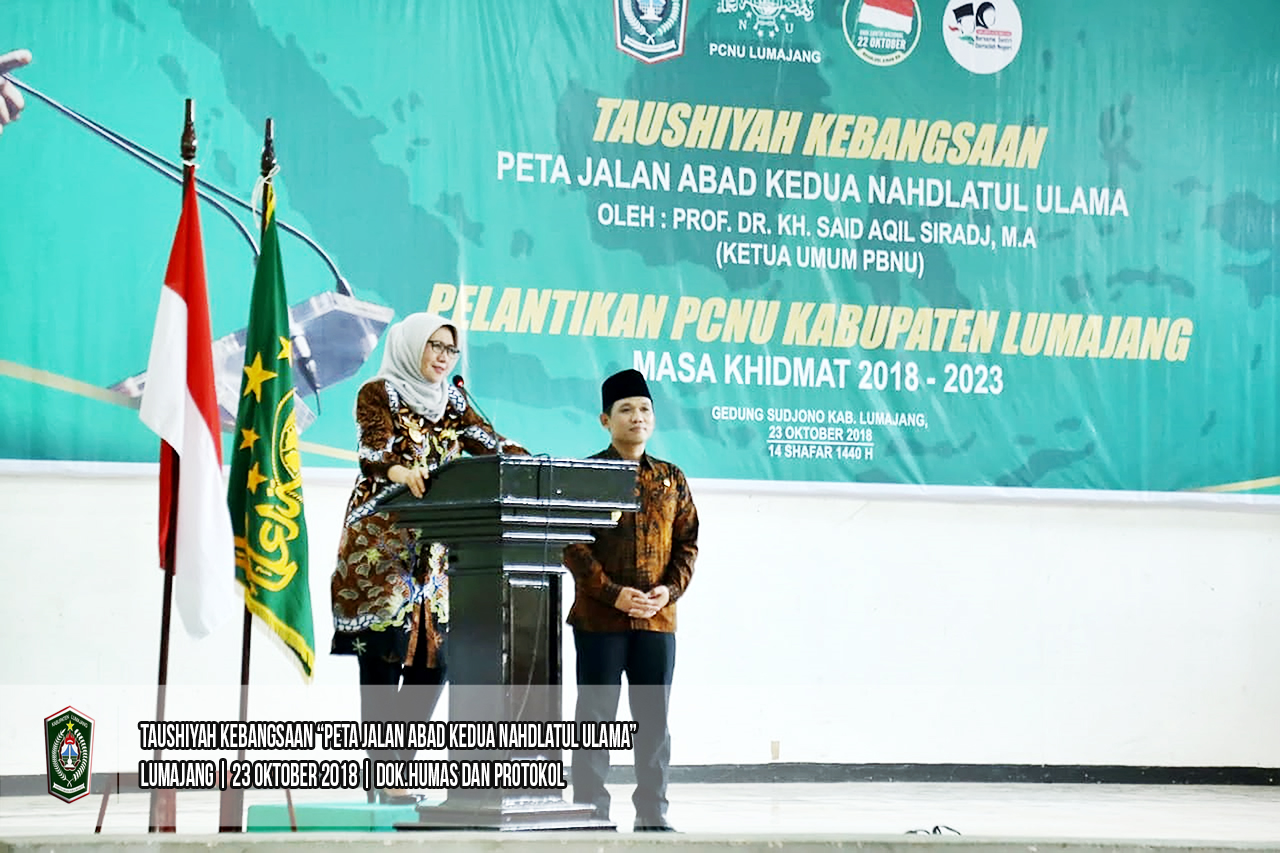 Peringatan Hari Santri Nasional Tahun 2018 di Kabupaten Lumajang juga diperingati dengan menggelar kegiatan Taushiyah Kebangsaan dengan tema "Peta Jalan Abad Kedua Nahdlatul Ulama", di Gedung Kesenian dr. Seodjono Lumajang, Selasa (23/10/2018).