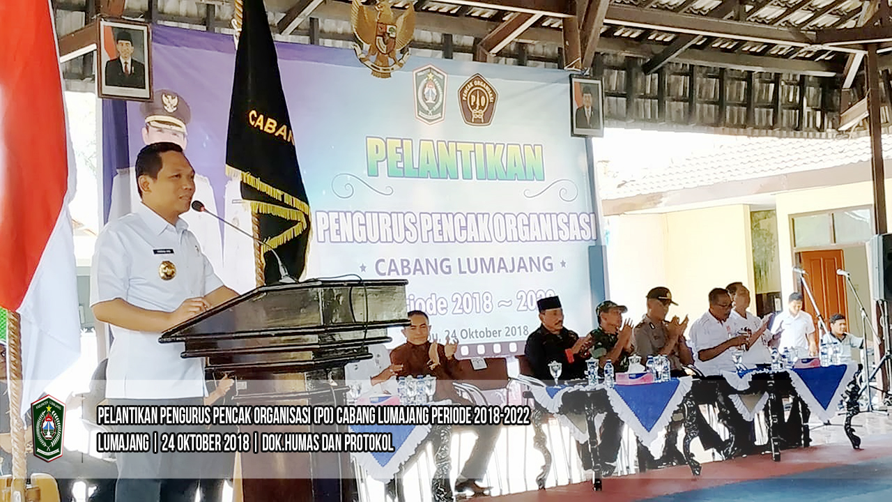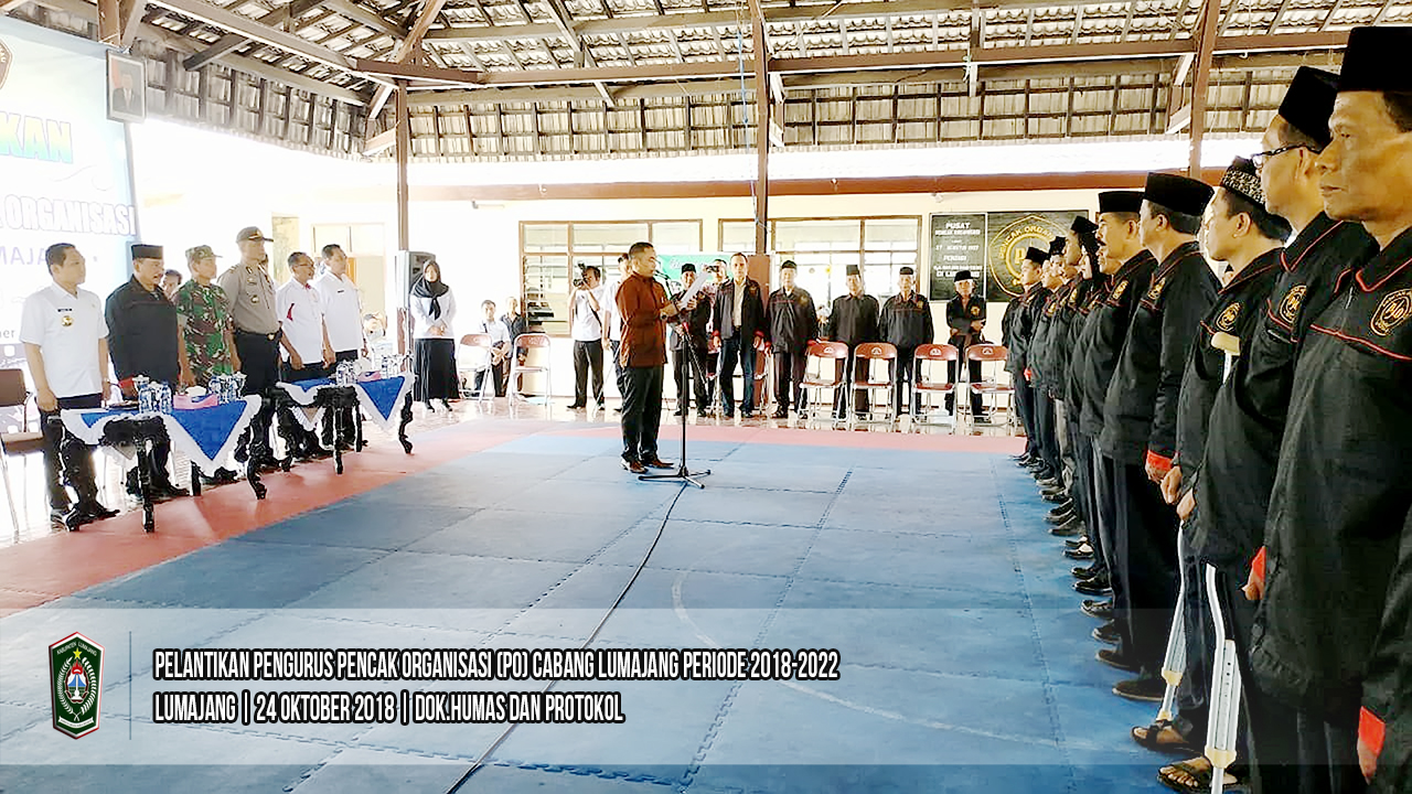 Bupati Lumajang, Thoriqul Haq (Cak Thoriq) menghadiri Pelantikan Pengurus Pencak Organisasi (PO) Cabang Lumajang Periode 2018-2022 di Padepokan PO Lumajang, Rabu (24/10/2018). Pelantikan dilakukan oleh Kepala Bidang Organisasi, Pengurus Pusat Pencak Organisasi, Nurhadi.