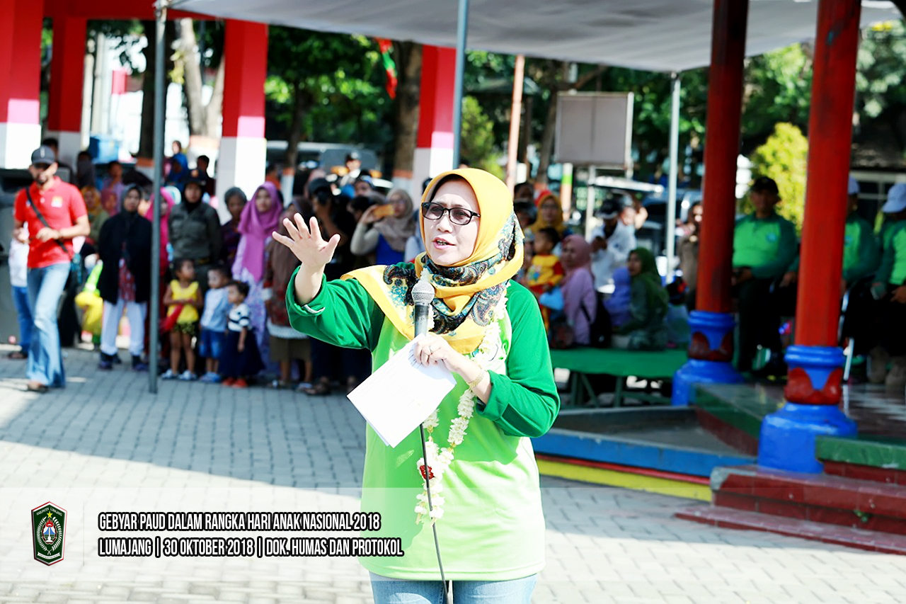 Gebyar PAUD dalam rangka peringatan Hari Anak Nasional 2018 yang dilaksanakan di Alun-alun Lumajang, Selasa (30/10/2018) berlangsung meriah. Kegiatan ini diikuti oleh siswa-siswi PAUD se-Kabupaten Lumajang.