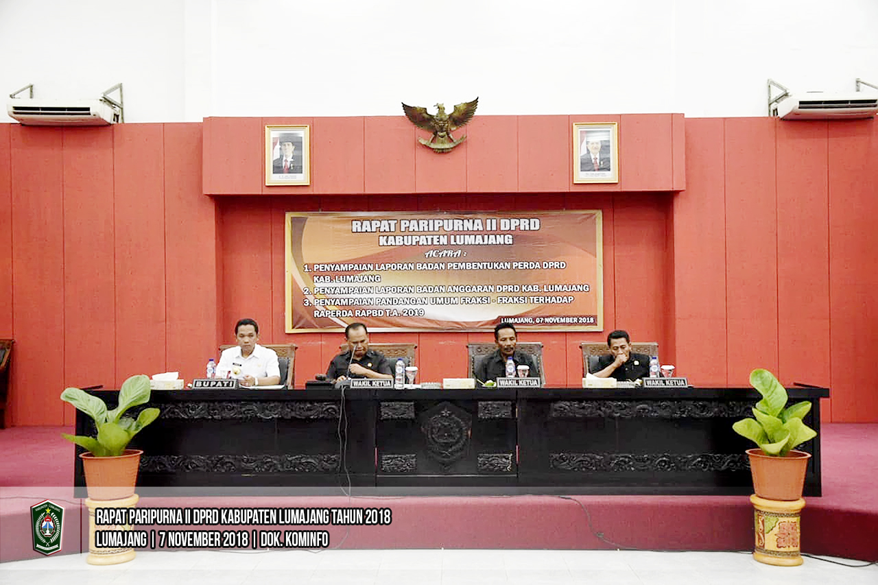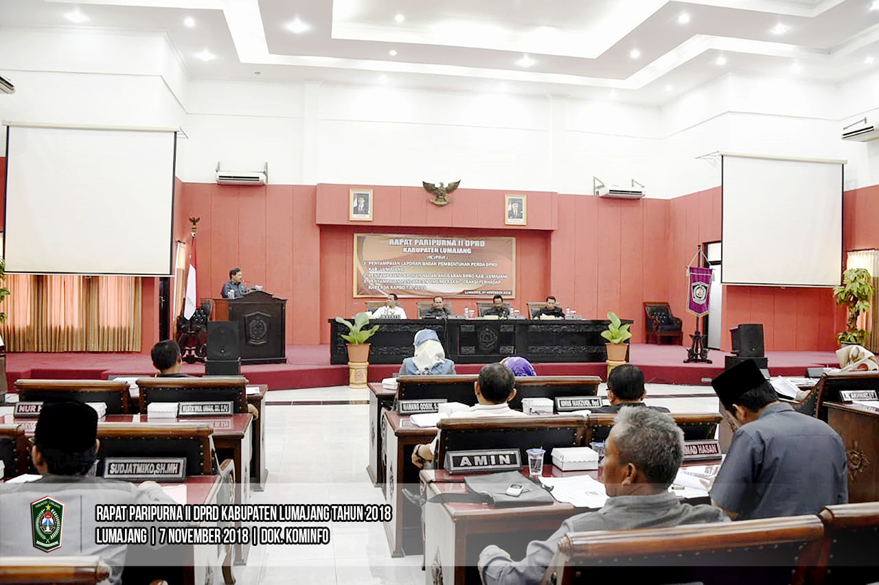 Dewan Perwakan Rakyat Daerah (DPRD) Kabupaten Lumajang menyelenggarakan Rapat Paripurna II yang dipimpin oleh Wakil Ketua DPRD Kab. Lumajang, Syamsul Huda di Ruang Rapat Paripurna DPRD Lumajang, Rabu (07/11/2018).