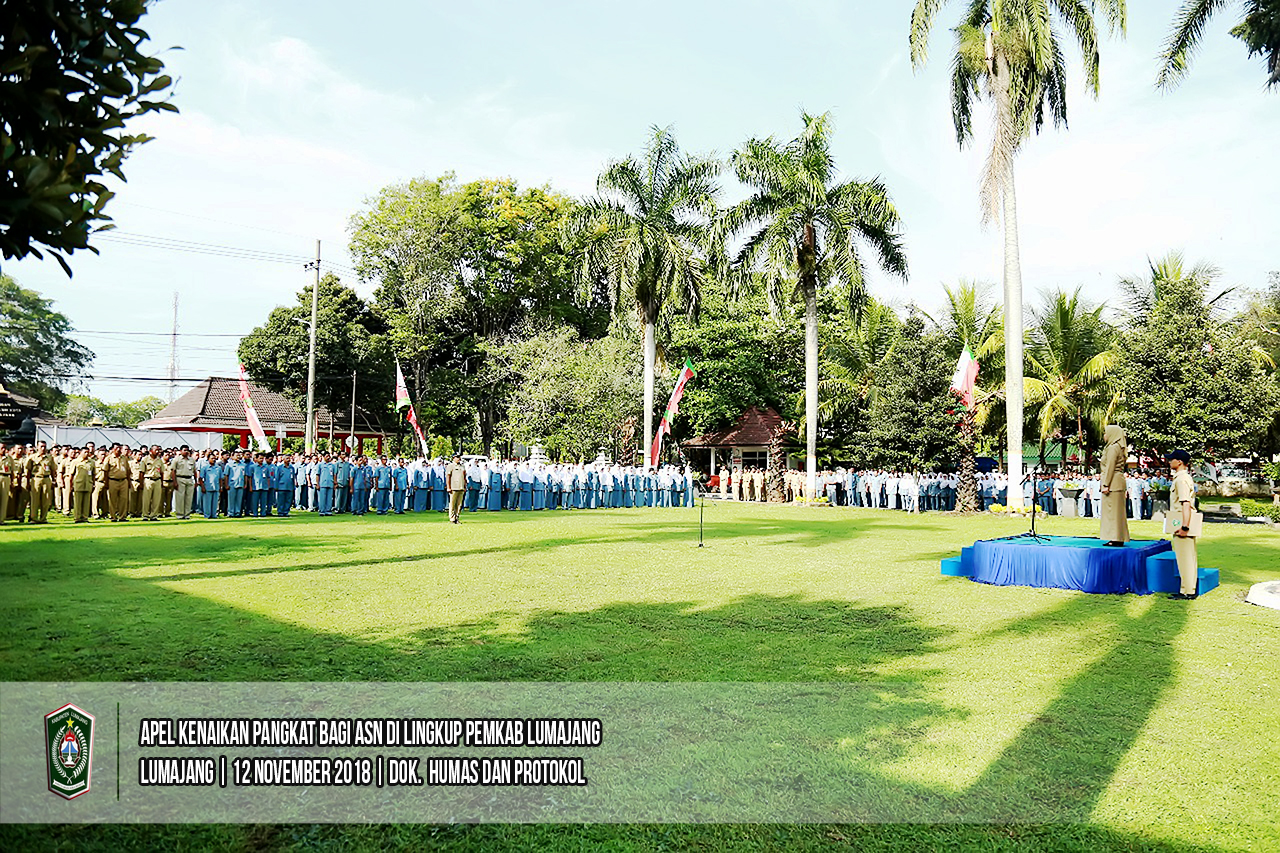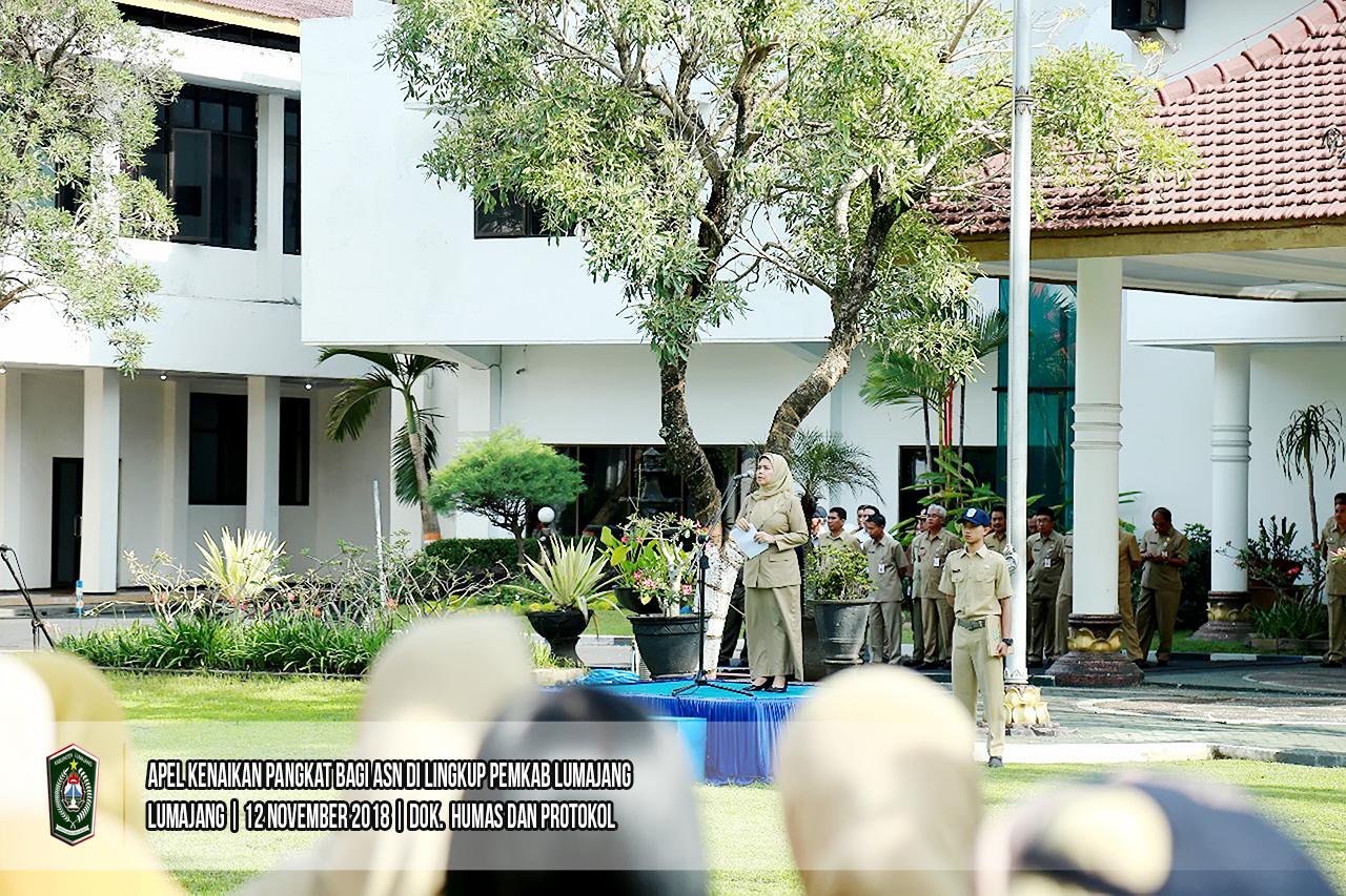 Hal tersebut disampaikan oleh Plt. Asisten Administrasi Setda Kabupaten Lumajang Hanifah Diah Ekasiwi saat menjadi Pembina Apel dalam rangka Kenaikan Pangkat bagi ASN di lingkup Pemkab Lumajang, bertempat di halaman Kantor Bupati Lumajang, Senin (12/11/2018).