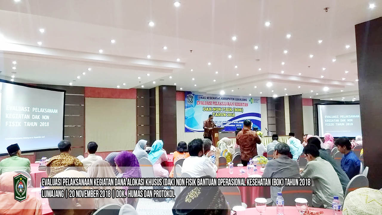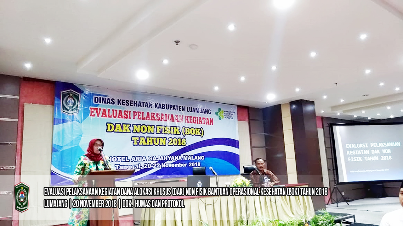 Dalam rangka evaluasi kegiatan Bantuan Operasional Kesehatan (BOK) bagi Puskesmas se-Kabupaten Lumajang, Pemkab Lumajang melalui Dinas Kesehatan Kabupaten Lumajang menyelenggarakan pertemuan Evaluasi Pelaksanaan Kegiatan Dana Alokasi Khusus (DAK) Non Fisik Bantuan Operasional Kesehatan (BOK) Tahun 2018. BOK merupakan bantuan pemerintah pusat kepada pemerintah daerah untuk mendukung operasional Puskesmas dalam rangka pencapaian program kesehatan nasional.