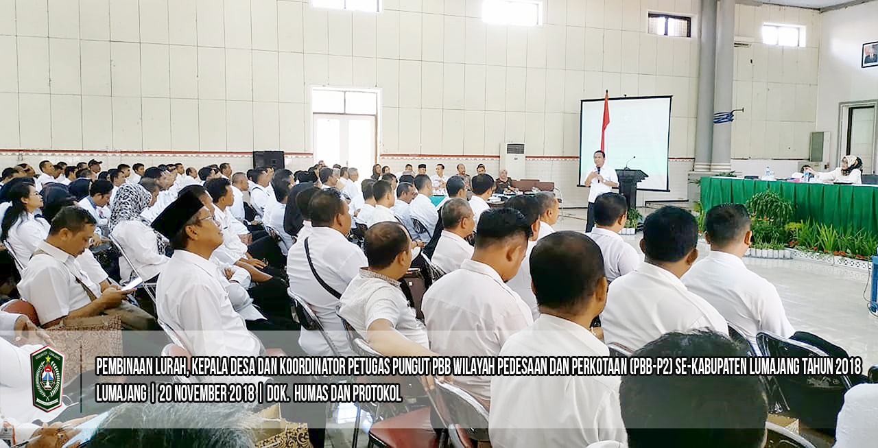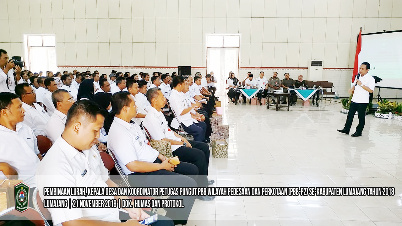 Bupati Lumajang, Thoriqul Haq (Cak Thoriq) bersama Wakil Bupati Lumajang, Indah Amperawati, (Bunda Indah) menghadiri Pembinaan Lurah, Kepala Desa dan Koordinator Petugas Pungut Pajak, Bumi dan Bangunan wilayah Pedesaan dan Perkotaan (PBB-P2) se-Kabupaten Lumajang tahun 2018, di Gedung dr. Soedjono Kabupaten Lumajang, Rabu (21/11/2018).