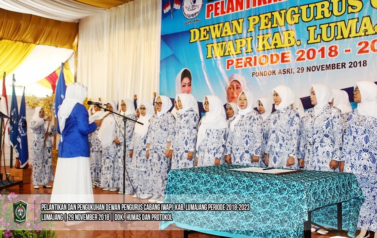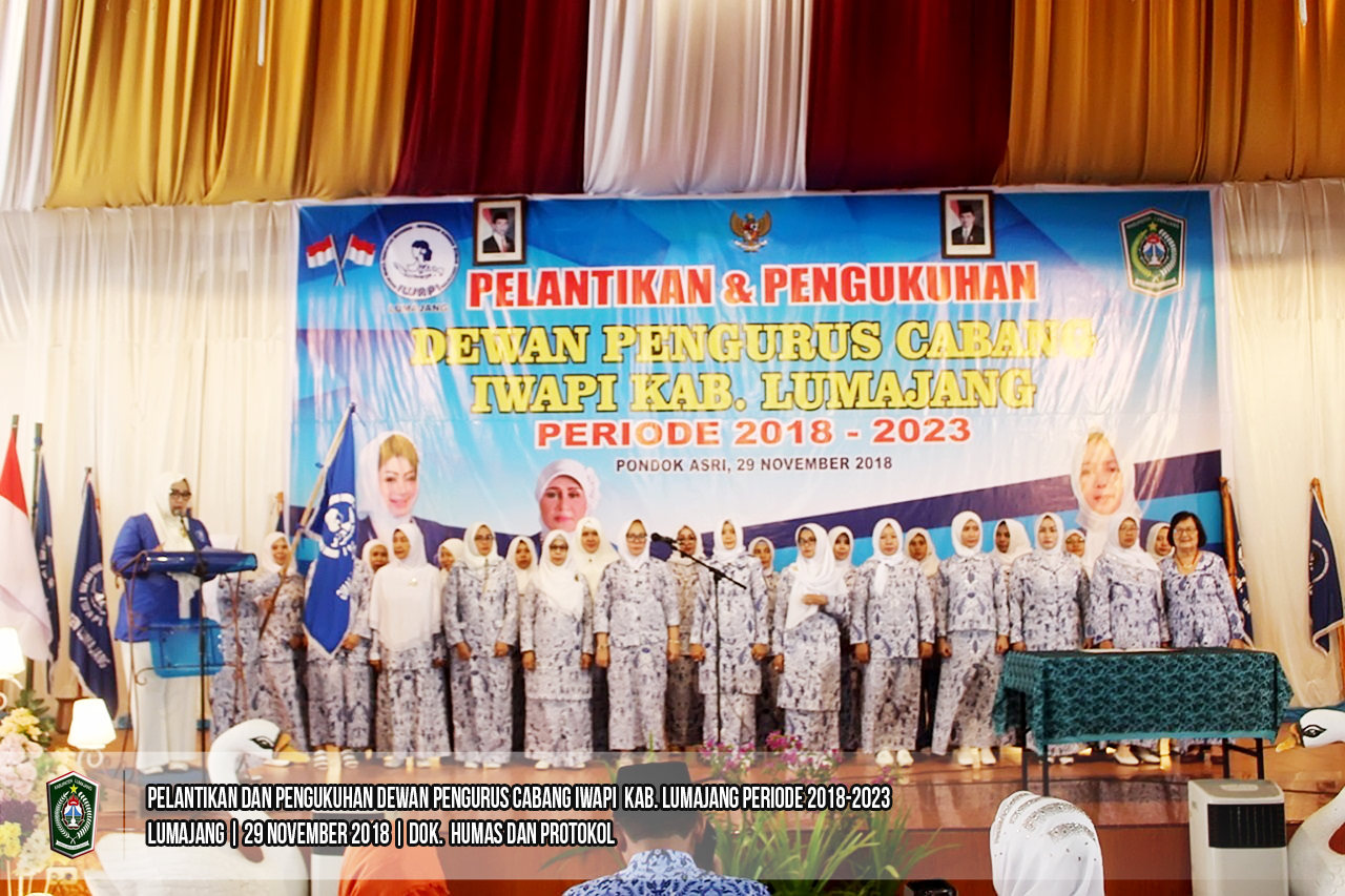 Dewan Pengurus Cabang Ikatan Wanita Pengusaha Indonesia (DPC IWAPI) Kab. Lumajang masa bhakti 2018-2023 resmi dilantik, Kamis (29/11/2018). Sebanyak 30 orang pengurus Cabang itu dilantik Ketua DPD IWAPI Prov. Jatim, Hj. Susmiati Rahmawati di Warung Apung Pondok Asri Kecamatan Sukodono. Prosesi pelantikan, diawali pembacaan Surat Keputusan dan pembacaan naskah pelantikan oleh Ketua DPD IWAPI Prov. Jatim dilanjutkan penandatanganan naskah Pelantikan oleh Ketua DPC IWAPI Kab. Lumajang dan Ketua DPD IWAPI Prov. Jatim yang disaksikan oleh Bupati Lumajang, Thoriqul Haq (Cak Thoriq).