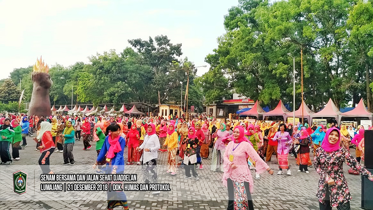 Peringatan Hari Ibu ke 90 diperingati secara unik di Kabupaten Lumajang. Jumat pagi (21/12/2018), seluruh Aparatur Sipil Negara (ASN), Persatuan Wanita Olahraga Seluruh Indonesia (Perwosi) Kab. Lumajang dan masyarakat melakukan Senam Bersama dan Jalan Sehat Djadoelan. Seluruh peserta kegiatan nampak riang gembira berolahraga senam bersama dan jalan sehat mengenakan kostum olahraga bernuansa jaman dulu.