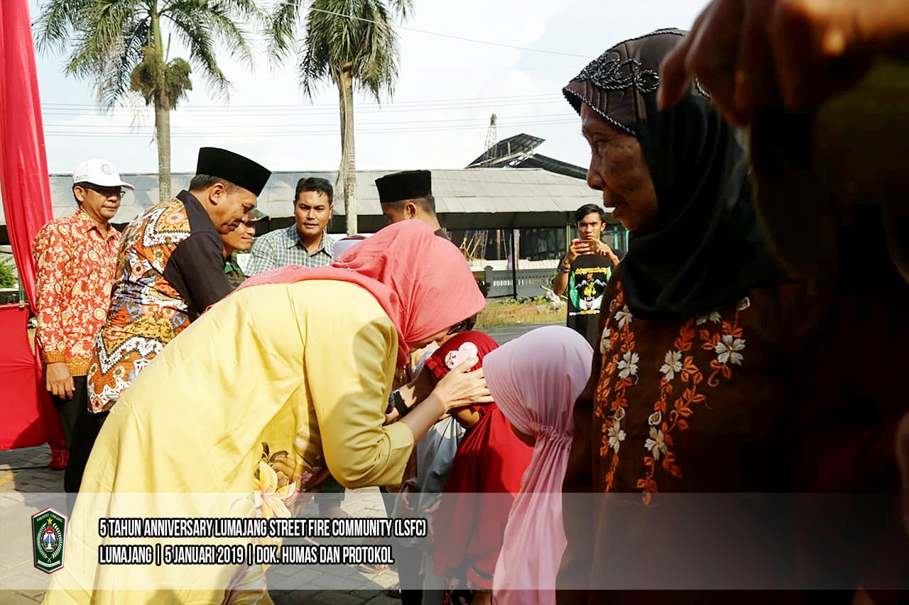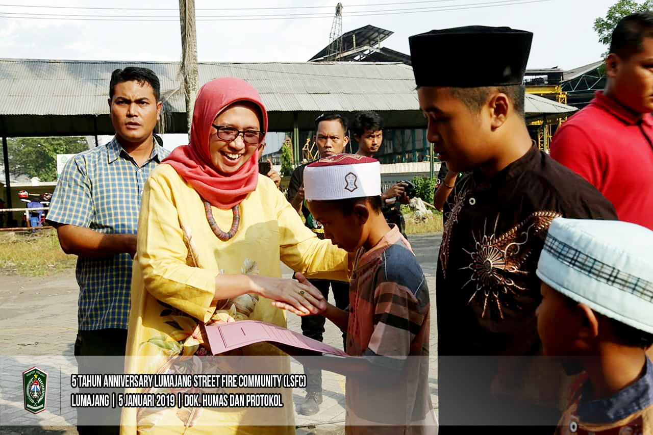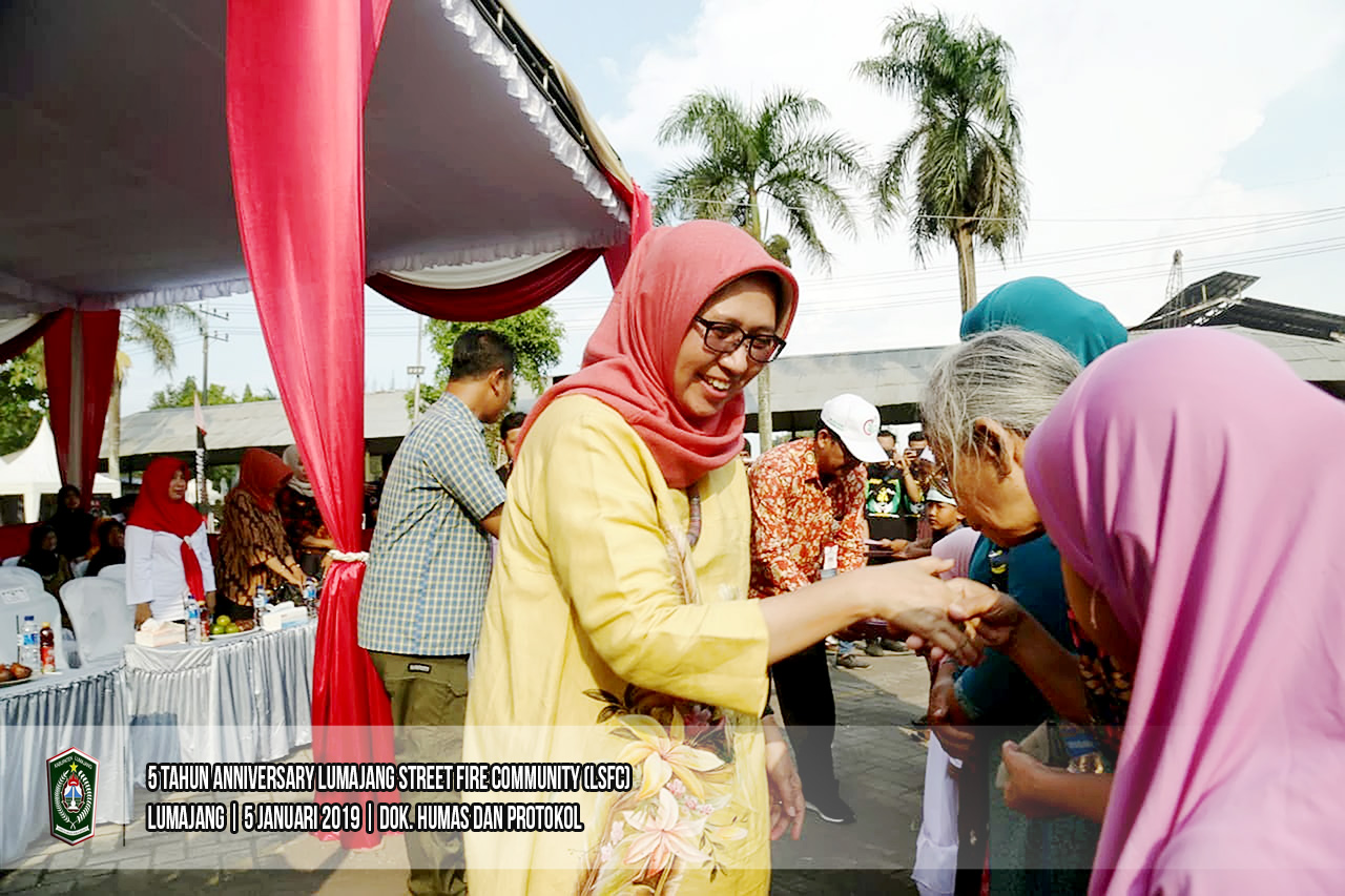 Wakil Bupati Lumajang Indah Amperawati (Bunda Indah) menghadiri acara 5 tahun Anniversary Lumajang Street Fire Community (LSFC), di PG Jatiroto Park, Desa Kaliboto Lor, Kecamatan Jatiroto, Sabtu (05/01/2019).