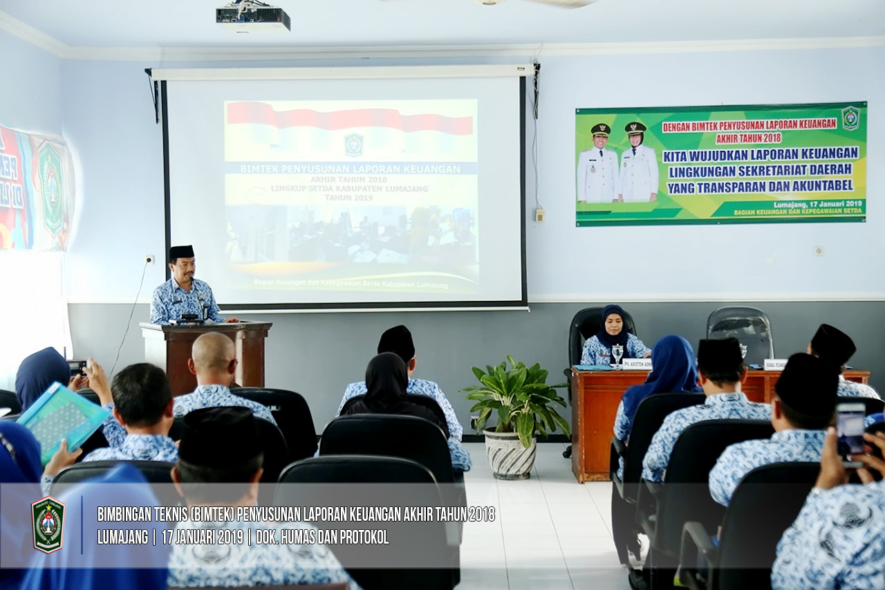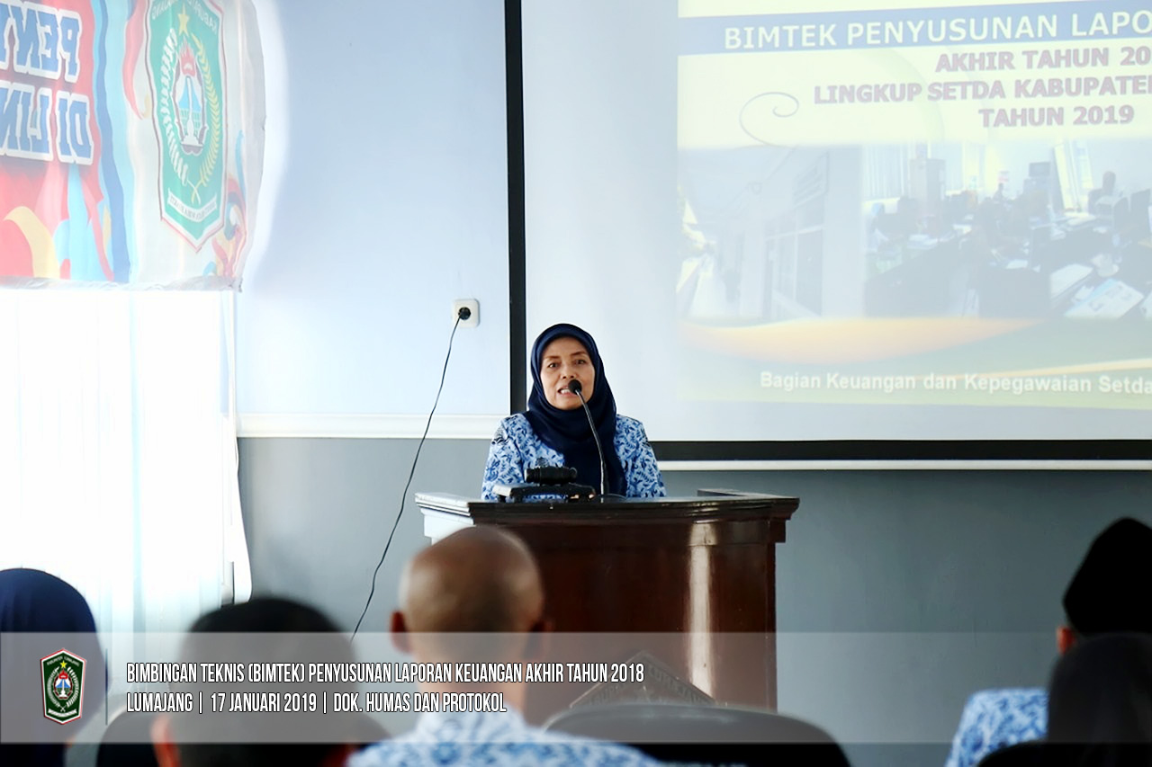 Plt. Asisten Administrasi Sekda Kabupaten Lumajang, Hanifah Dyah Ekasiwi mengimbau kepada para PPTK untuk membiasakan membuat laporan kepada kuasa pengguna anggaran seusai melaksanakan kegiatan. Begitu juga Surat Pertanggung Jawaban (SPJ) harus tertib. Hal itu disampaikan saat membuka Bimbingan Teknis (Bimtek) Penyusunan Laporan Keuangan akhir tahun 2018, di Lantai 3 Belakang Kantor Bupati Lumajang, Kamis (17/01/19) pagi.