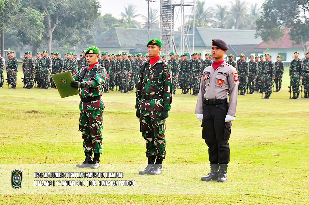 Hal tersebut disampaikan oleh Dandim 0821 Lumajang Letkol Inf. Ahmad Fauzi, saat membacakan amanat Panglima TNI Marsekal Hadi Tjahjanto, S.I.P., dalam Upacara Bendera Tiga Pilar Kabupaten Lumajang, yang rutin digelar setiap tanggal 17, bertempat di lapangan Batalyon Infanteri (Yonif ) 527 Baladibya Yudha Lumajang, Kamis (17/1/2019).