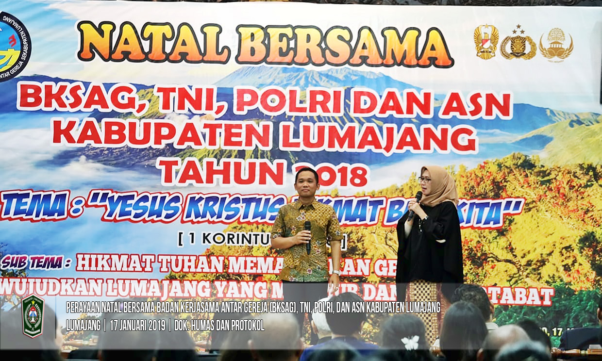 Hal tersebut dikatakannya saat menghadiri acara perayaan Natal bersama Badan Kerjasama Antar Gereja (BKSAG), TNI, POLRI, dan ASN Kabupaten Lumajang, bertempat di Pendopo Arya Wiraraja Lumajang, Kamis (17/1/2019) malam.