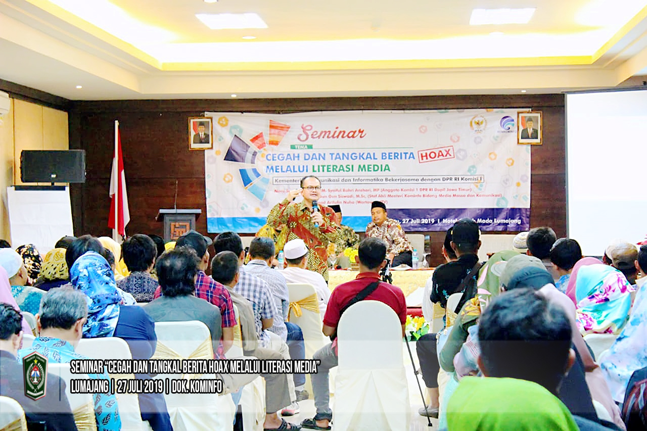 Hal tersebut diungkapkan oleh Staf Ahli Menteri Kominfo Bidang Media Komunikasi dan Media Massa Gun Gun Siswadi usai memberikan paparan pada Seminar yang bertajuk “Cegah dan Tangkal Berita Hoax Melalui Literasi Media”, bertempat di Hall Arjuna Hotel Gajah Mada Lumajang, Sabtu (27/7/2019).