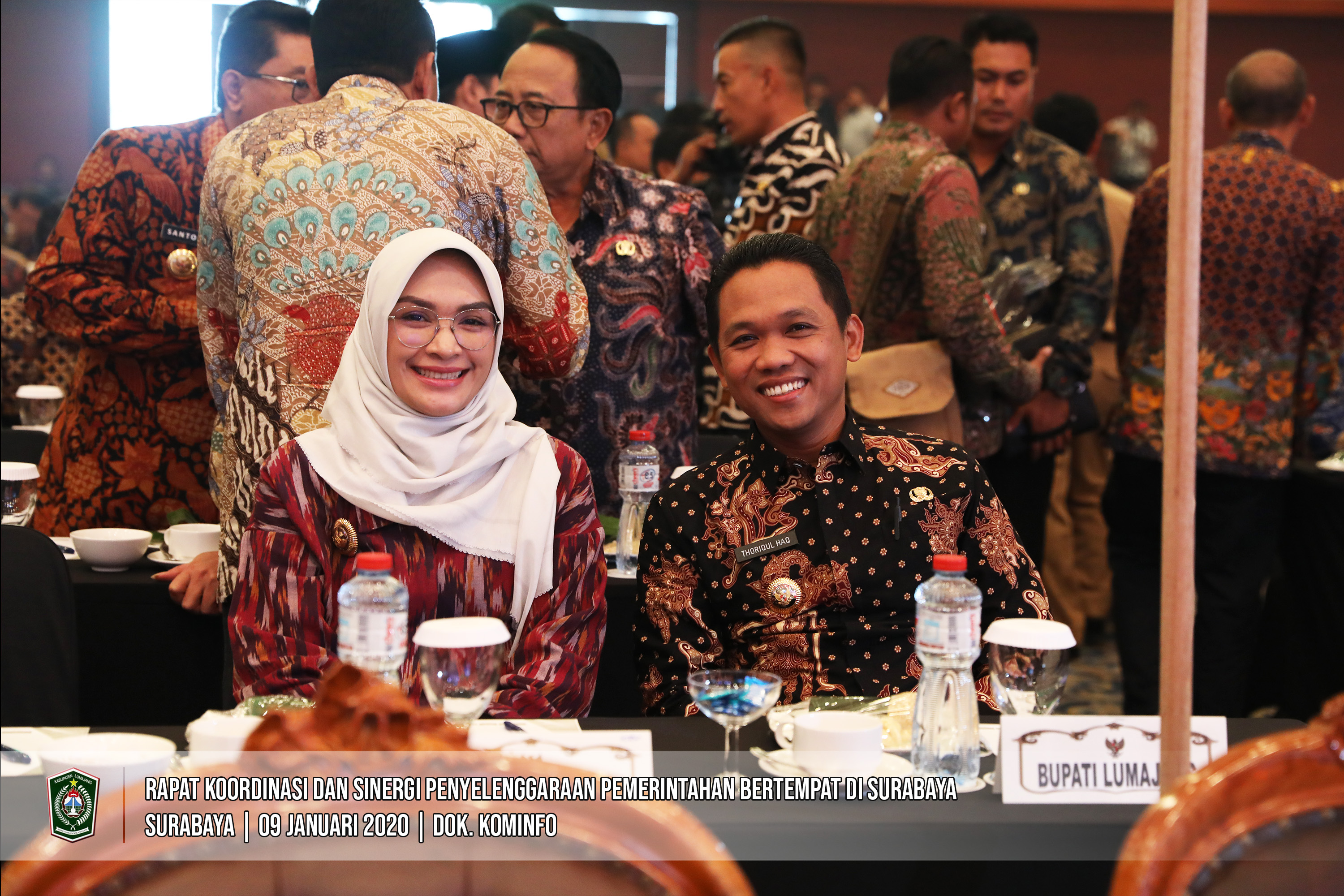 Bupati Lumajang, Thoriqul Haq bersama Kepala Daerah dan jajaran Forkopimda di Jawa Timur mengikut Rapat Koordinasi dan Sinergi Penyelenggaraan Pemerintahan Tahun 2020 di Convention Hall Grand City, Surabaya, Kamis (09/01/2020). Rakor ini membahas kesiapan Pemerintah Daerah di Jawa Timur mengimplementasikan Perpres No. 80 Tahun 2019.