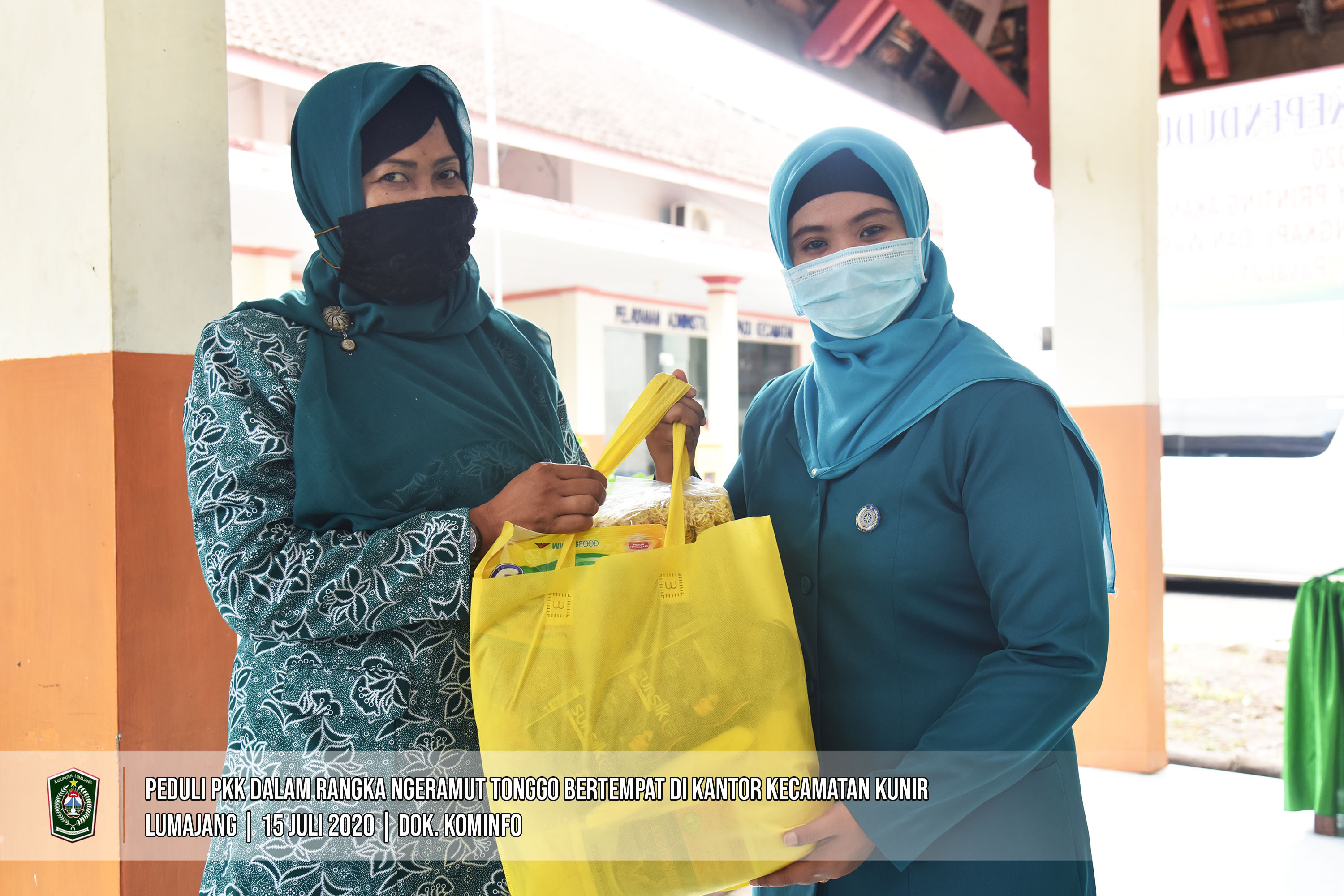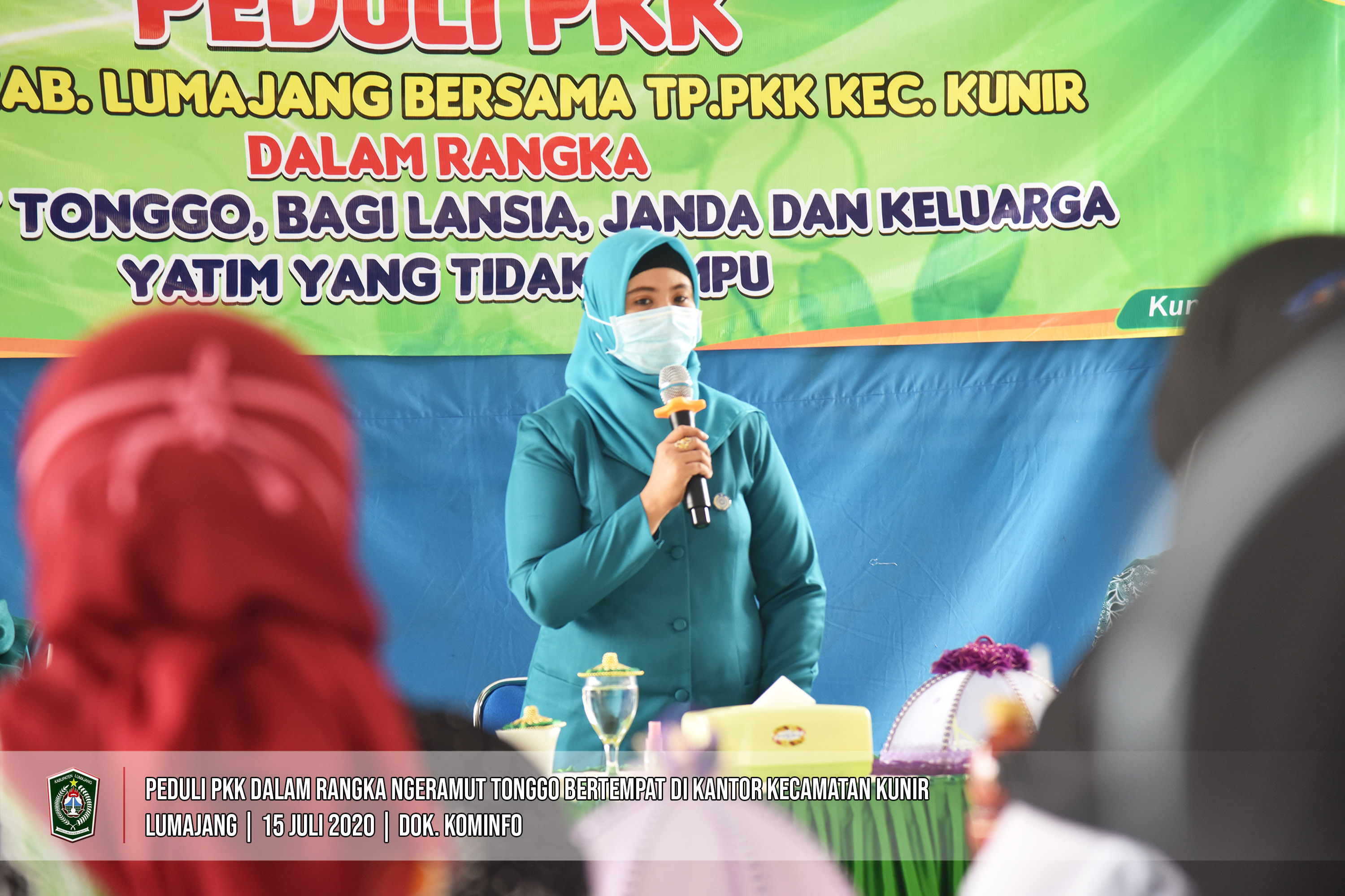 Guna mendukung program pemerintah dalam penanganan Covid-19 di Kabupaten Lumajang. Tim Penggerak PKK Kabupaten Lumajang menyerahkan bantuan beras kepada masyarakat di wilayah Kecamatan Kunir, bantuan tersebut diserahkan secara simbolis oleh Ketua Tim Penggerak PKK Kabupaten Lumajang, Hj. Musfarinah Thoriq, bertempat di Kantor Kecamatan Kunir, Rabu (15/7/2020).
