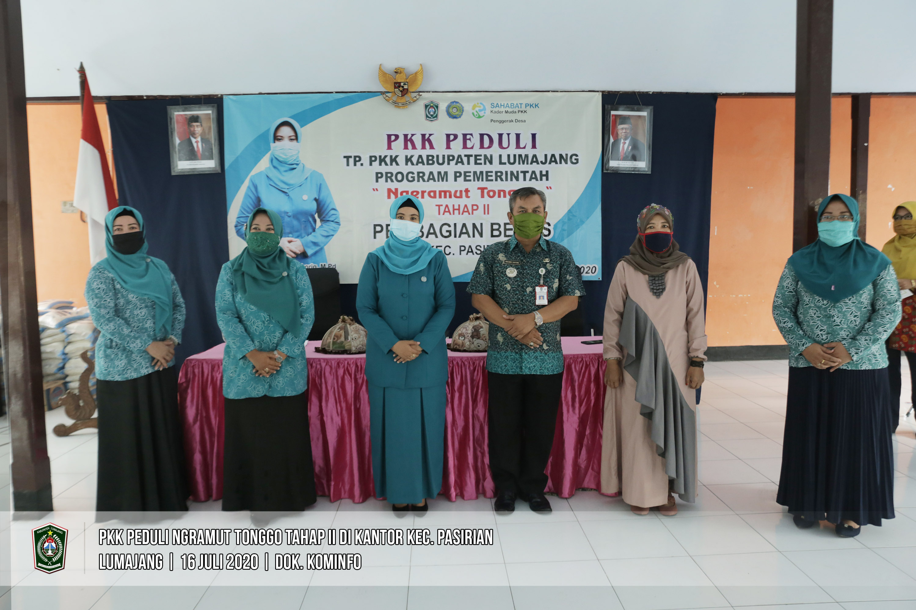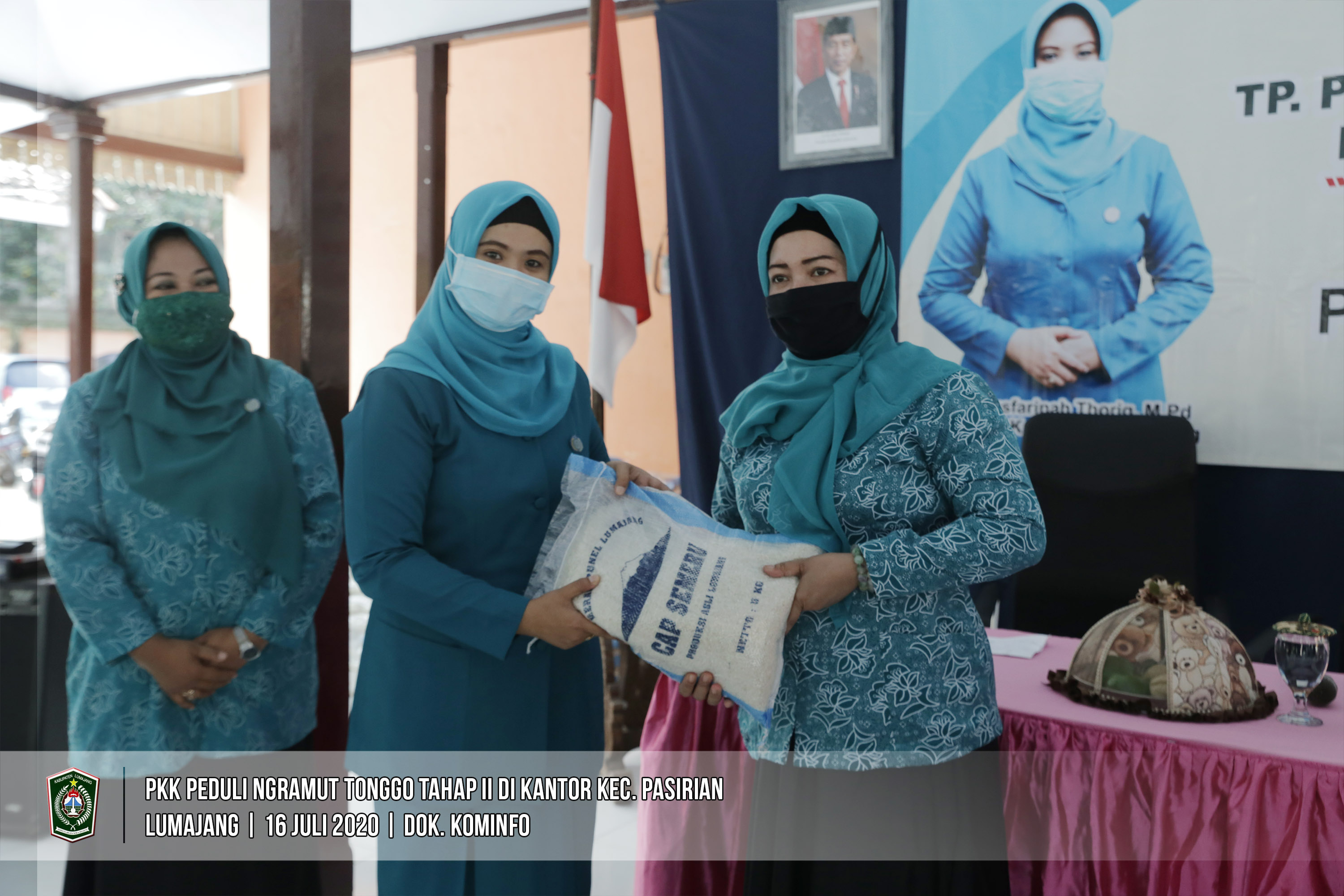 Medukung upaya Pemerintah Kabupaten Lumajang dalam pemenuhan dasar masyarakat kurang mampu dalam masa pandemi Covid-19, melalui program PKK Peduli, TP-PKK Kabupaten Lumajang bekerjasama dengan Dinas Sosial Kabupaten Lumajang menyerahkan sejumlah bantuan beras kepada masyarakat di Kecamatan Pasirian. Secara simbolis, bantuan tersebut diserahkan di Pendopo Kecamatan Pasirian, Kamis (16/7/2020).