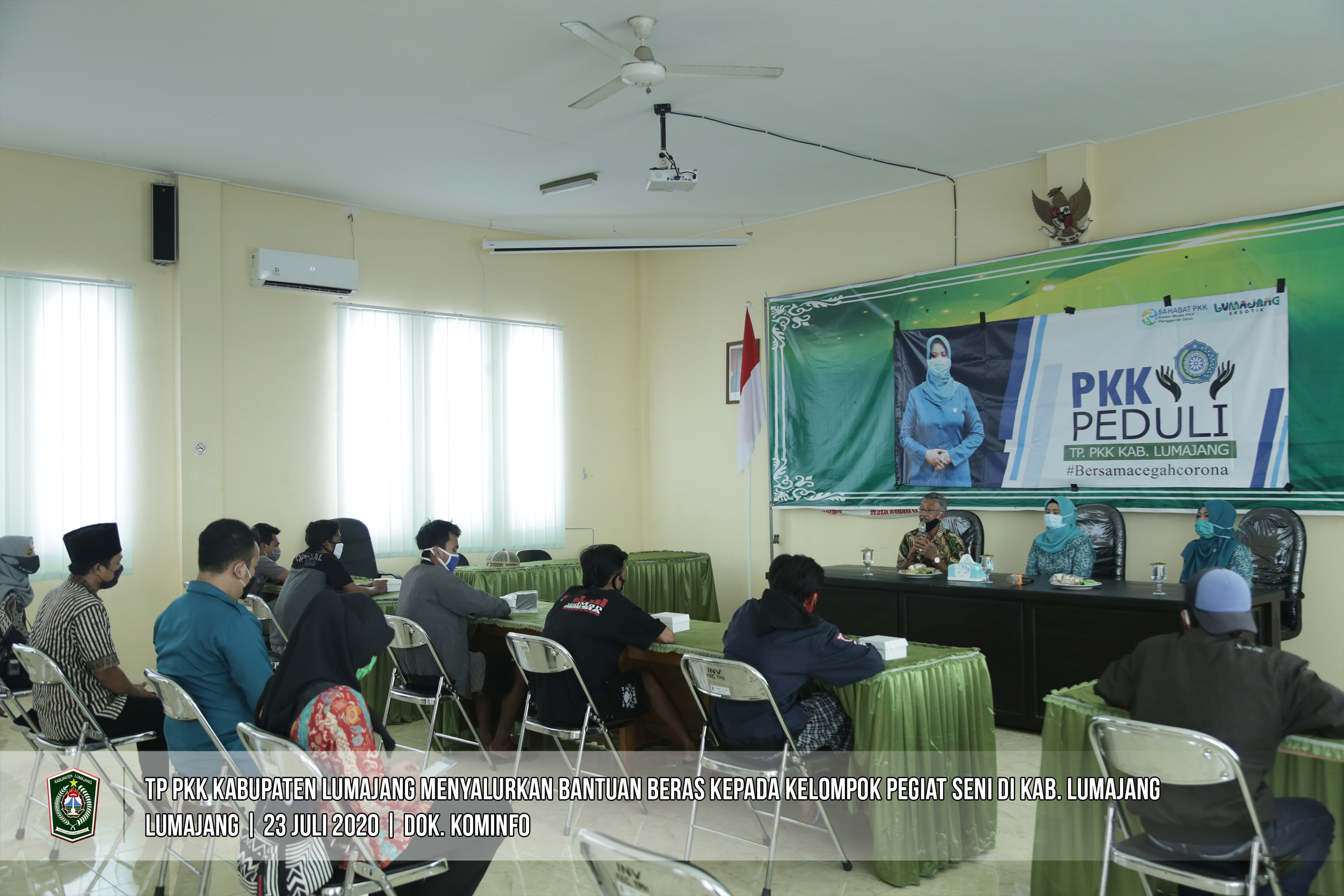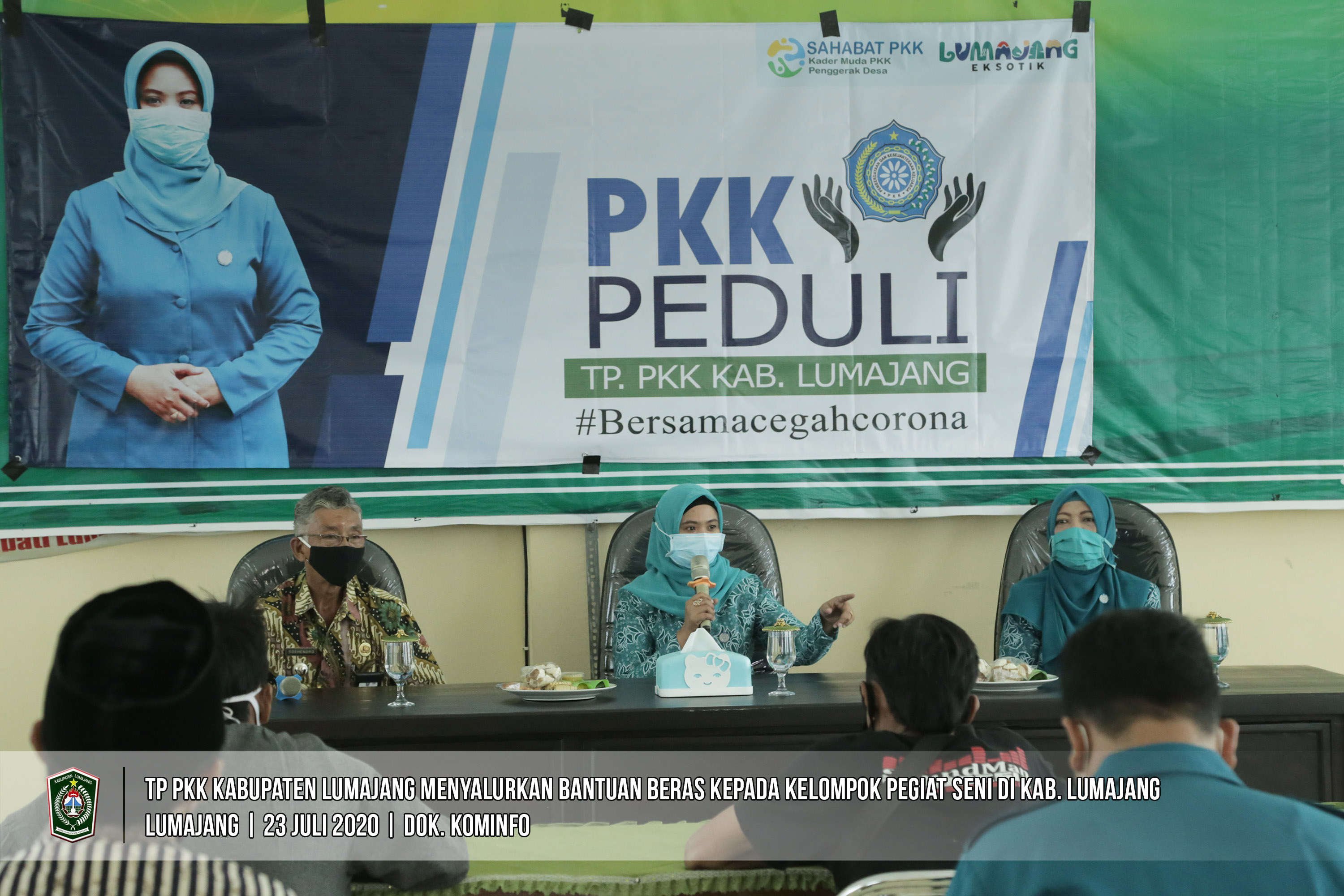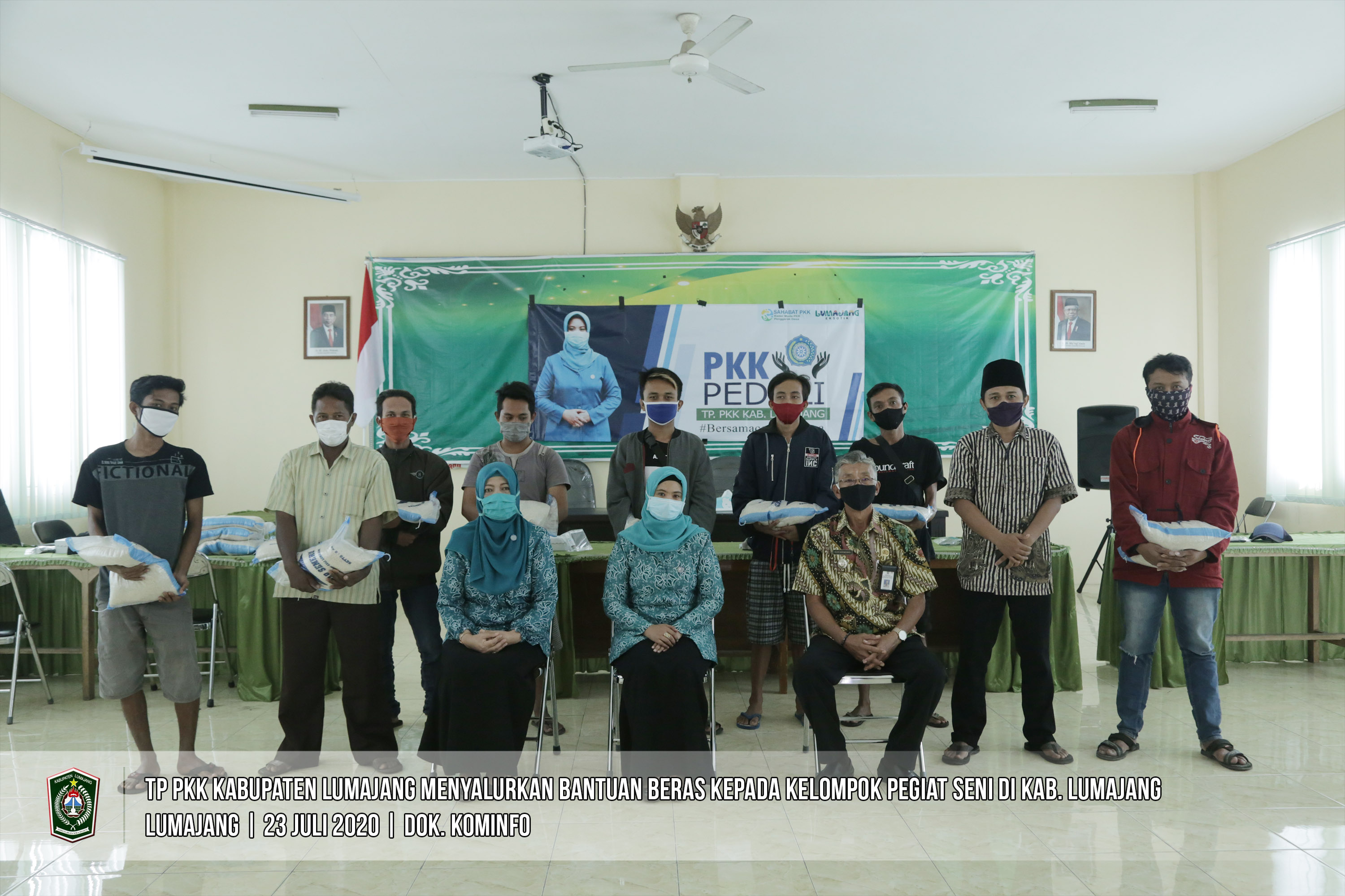 Pemerintah Kabupaten Lumajang terus memberikan perhatian kepada masyarakat yang terdampak Covid-19. Salah satu bentuk perhatian pemerintah melalui TP PKK Kabupaten Lumajang menyalurkan bantuan beras kepada kelompok pegiat seni yang ada di Kabupaten Lumajang.