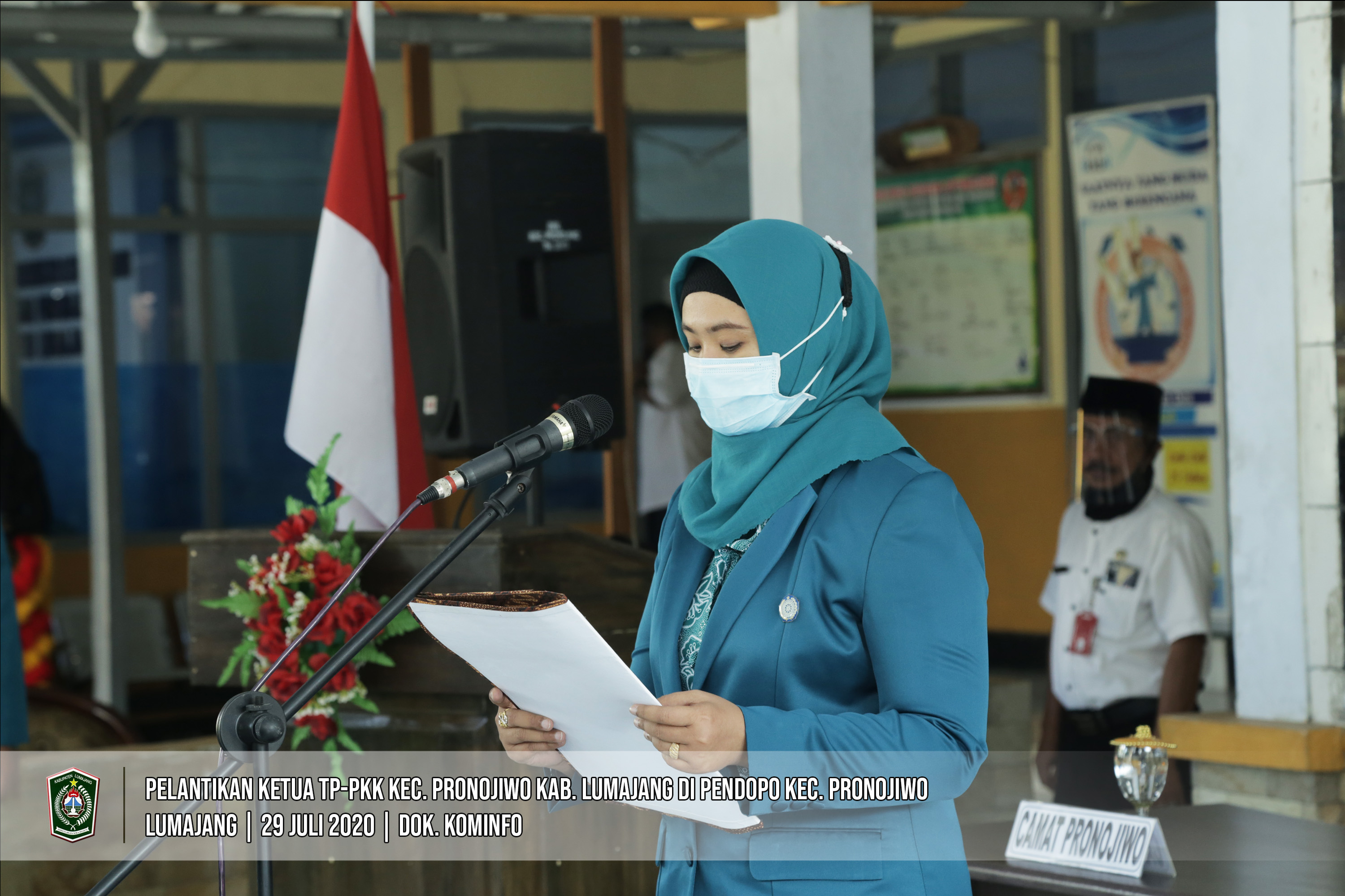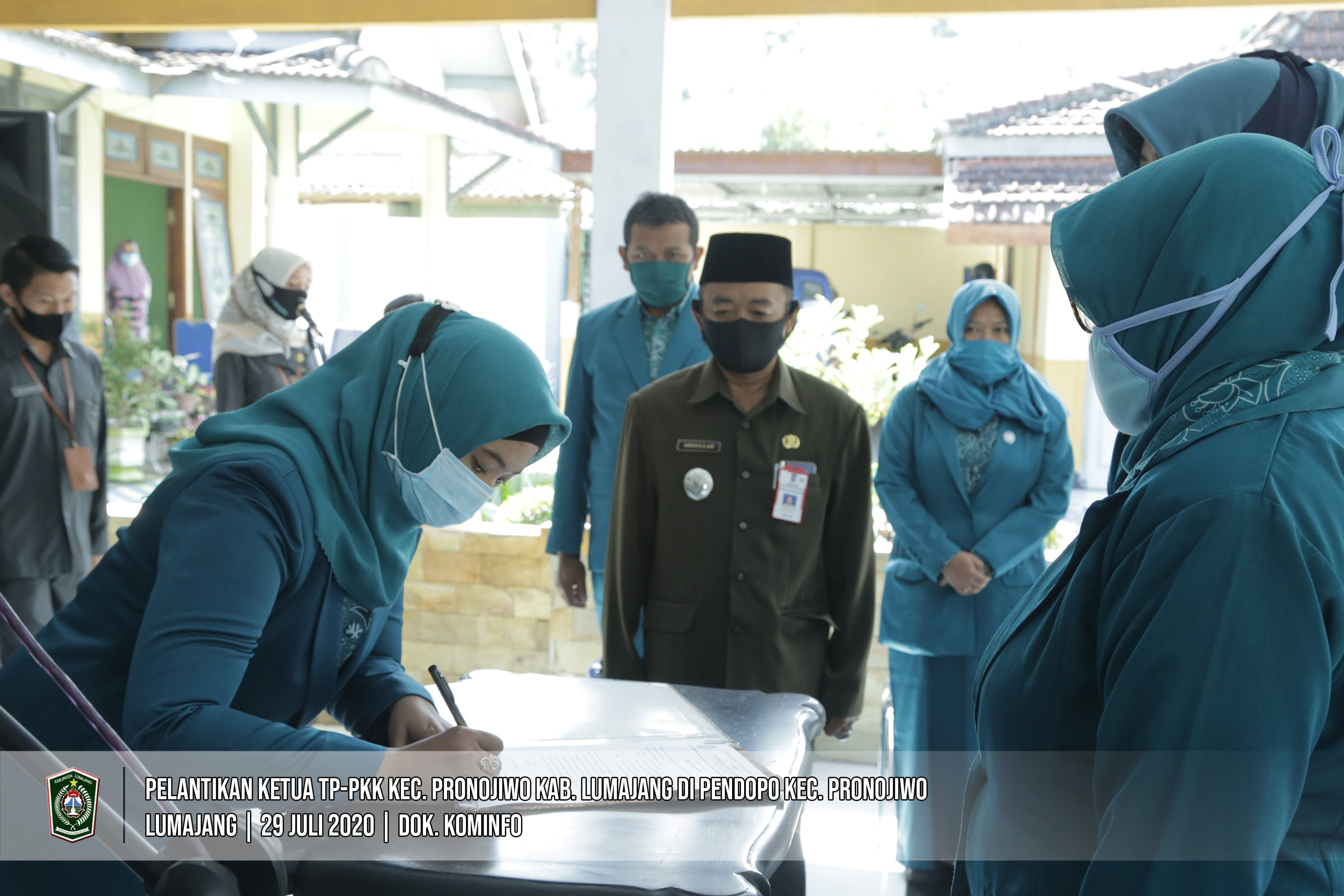 Ketua TP PKK Kabupaten Lumajang, Ny. Musfarina Thoriq melantik Ny. Nur Laila Abdullah sebagai Ketua TP PKK Kecamatan Pronojiwo yang sebelumnya dijabat Ny. Rossy Alfian. Pelantikan tersebut berlangsung di Pendopo Kecamatan Pronojiwo, Rabu (29/7/2020).
