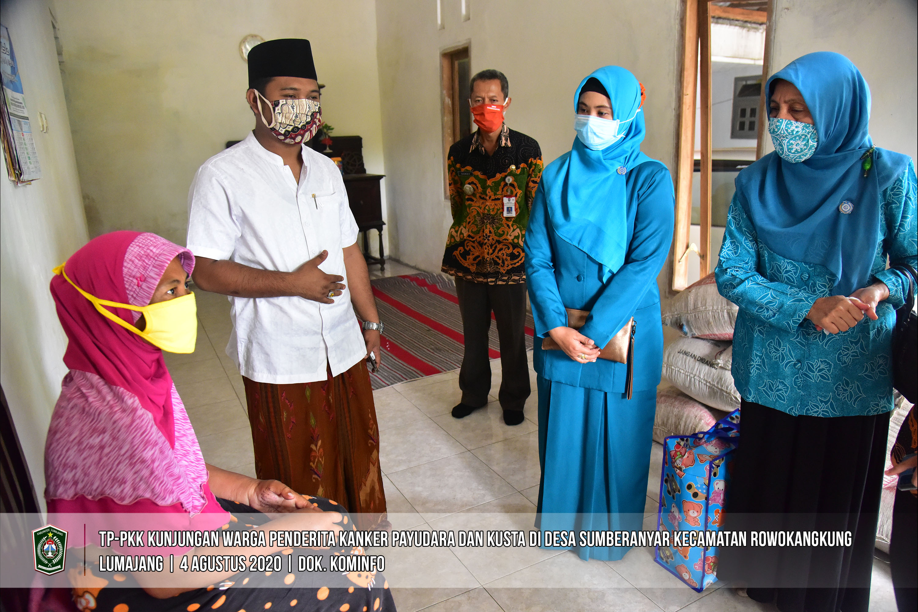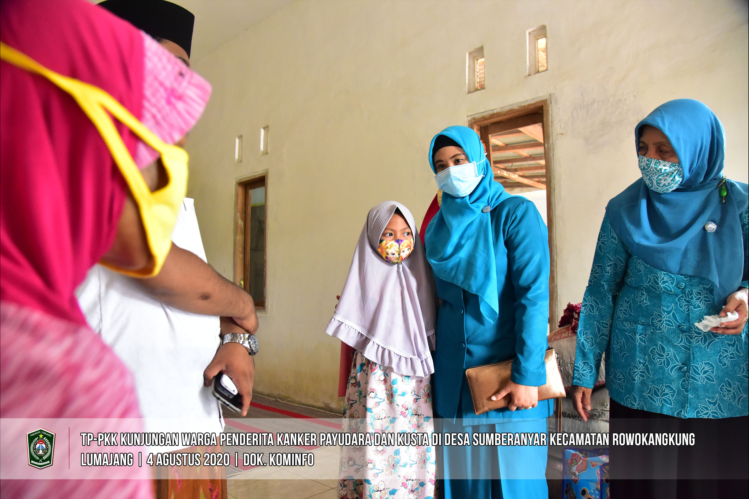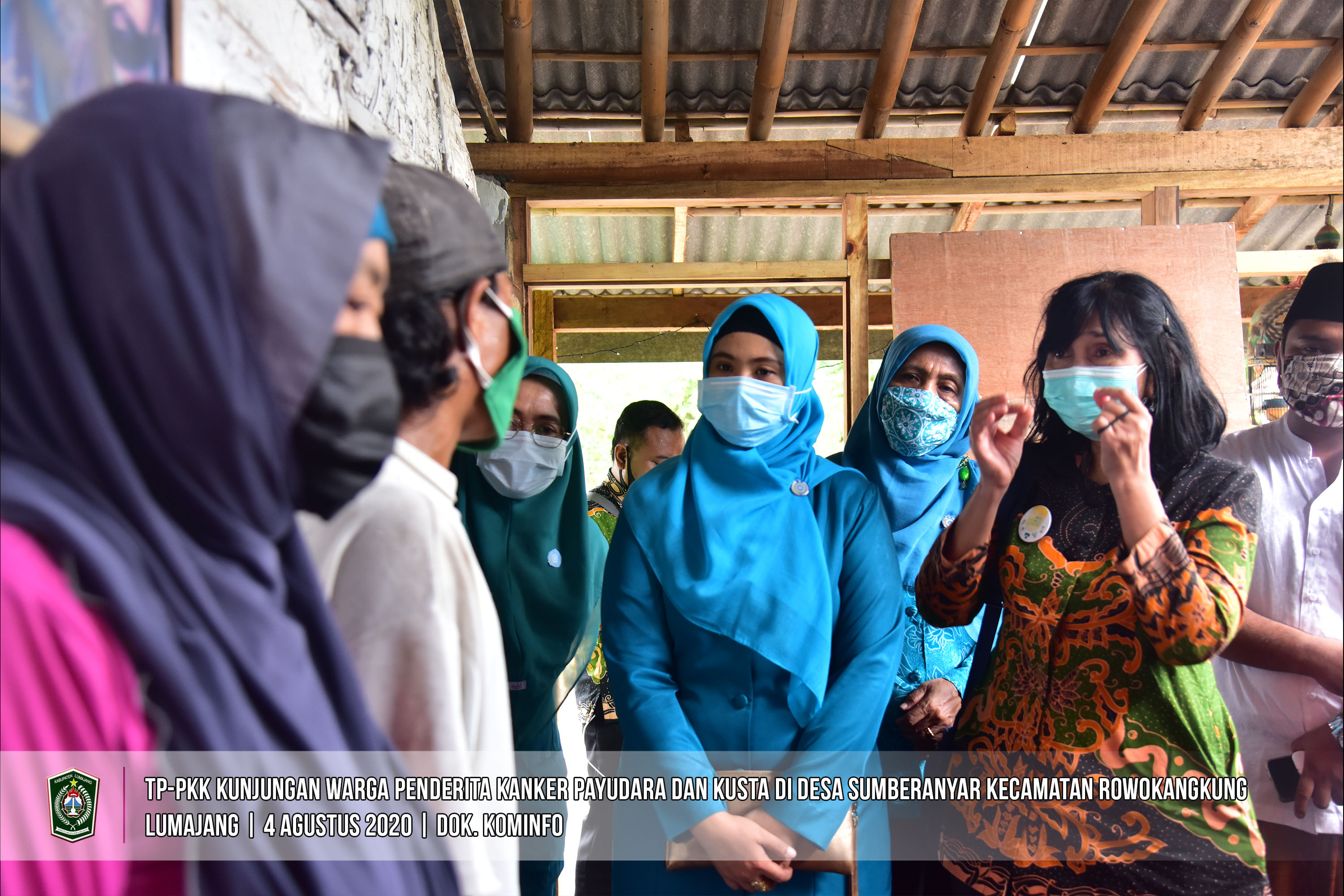 Disela-sela kunjungan kerja selaku Ketua TP PKK Kabupaten Lumajang, Ny. Musfarinah Thoriq bersama anggota PKK lainnya menyempatkan waktu untuk berkunjung kerumah warga penderita kanker payudara dan kusta, di Desa Sumberanyar Kecamatan Rowokangkung, Selasa (4/8/2020).