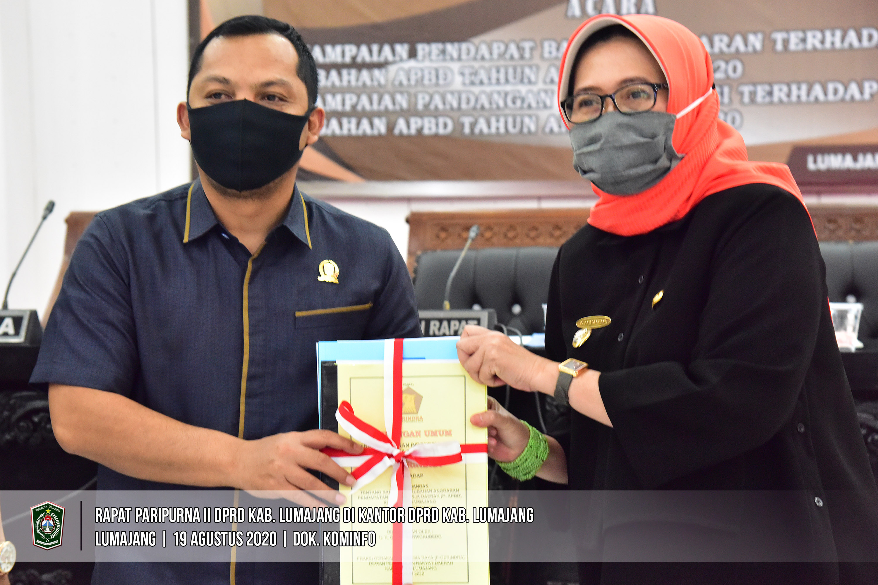 Selanjutnya, terkait Penyampaian Pandangan Umum Fraksi Terhadap Raperda Perubahan APBD Tahun Anggaran 2020, secara umum seluruh fraksi telah menyetujui adanya Perubahan APBD, dalam penyampaian tersebut juga terdapat saran dan kritikan dari masing-masing fraksi. Untuk itu, saran maupun kritikan tersebut harapannya kedepan dapat membawa Kabupaten Lumajang lebih maju.