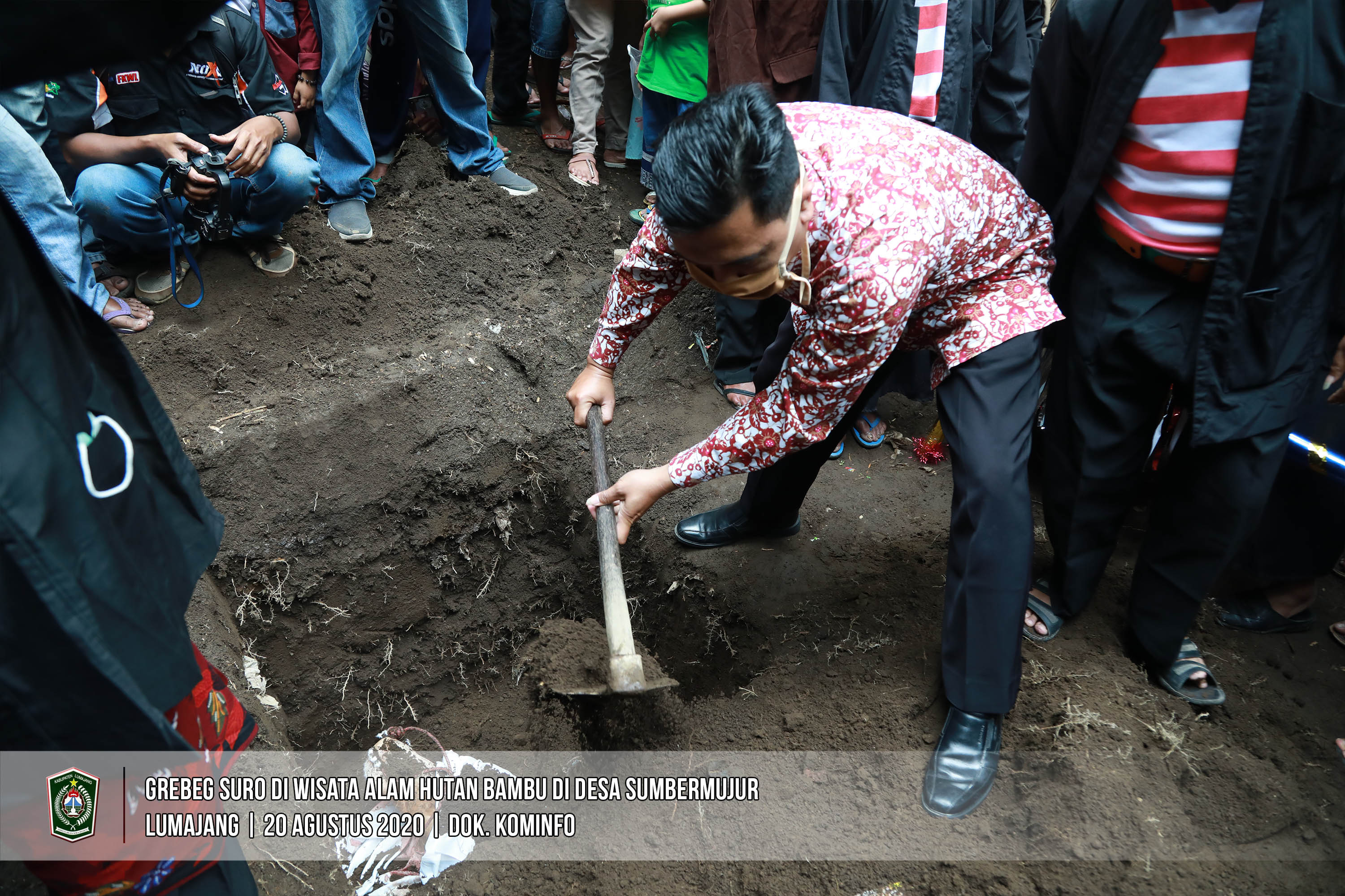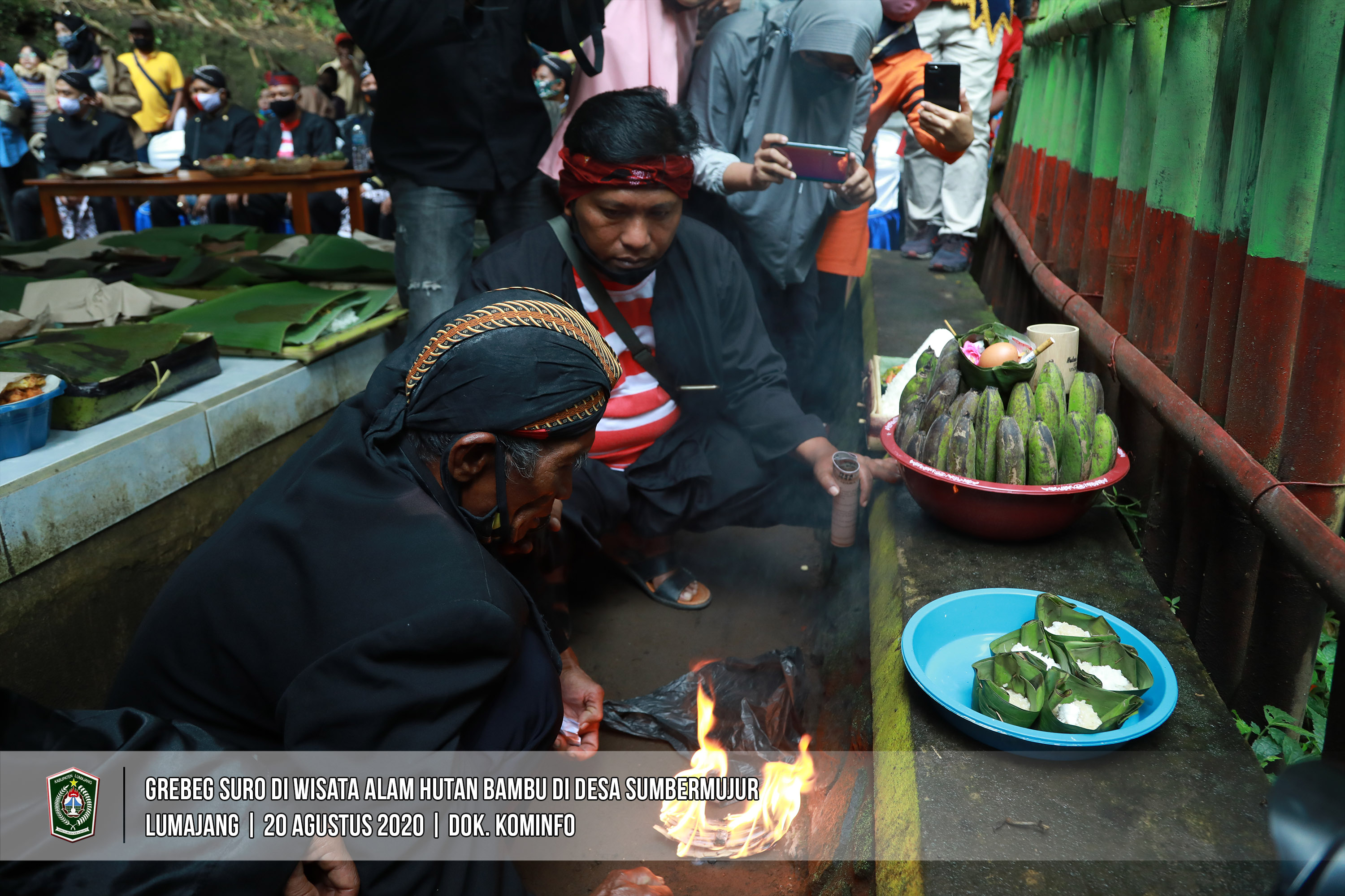 Grebeg Suro di Wisata Alam Hutan Bambu diselenggarakan dengan protokol kesehatan yang ketat, Kamis (20/08/2020). Seluruh panitia, para penari, undangan dan pengunjung yang hadir diwajibkan mengenakan masker.
